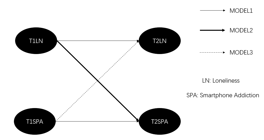 图1特质孤独与手机成瘾的交叉滞后模型