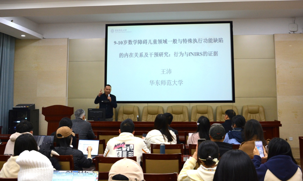 (通讯员 周莹 刁会)11月11日下午,华东师范大学教育学部博士生导师、紫江学者特聘教授、上海市曙光学者、教育部“新世纪”人才王沛教授在beat365手机版官网入口102教室,做了“数学学习障碍儿童领域一般与特殊执行功能缺陷的内在关系及干预研究:行为与ANIRS的证据”的学术讲座。本次讲座由胡义秋教授主持。