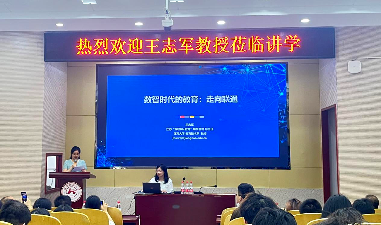 (通讯员 王玲珑 张佳琪)5月18日上午,江南大学王志军教授应公司邀请,在田家炳教育书院101报告厅作“数智时代的教育:走向联通”的学术讲座。本次讲座由教育技术学系主任周炫余主持,彭绍东教授、蔡荣华副教授、刘娟老师、刘文胜老师、白蕴琦老师和教育技术学系全体员工等一起聆听了讲座。