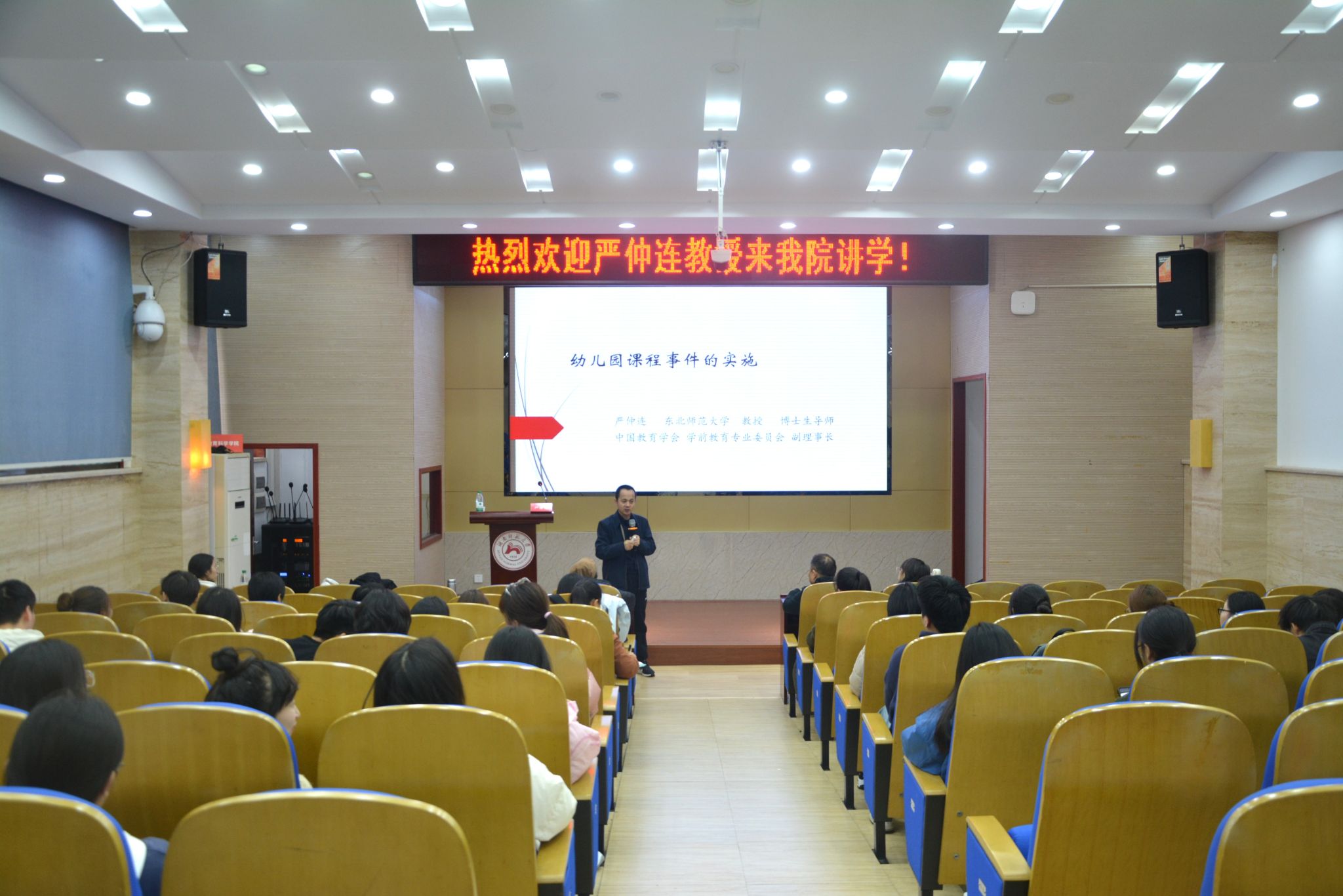 (通讯员 李婕)11月22日在公司学术报告厅,中国教育学会学前教育专业委员会副理事长、东北师范大学教授严仲连为公司师生作题为“幼儿园课程事件的实施”的学术讲座。学前教育系教授郑三元主持。