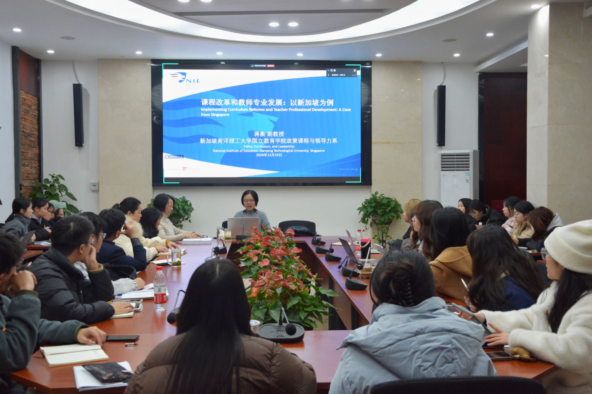 (通讯员 王紫琼)12月19日晚上,新加坡南洋理工大学国立教育公司政策、课程与领导力系代理系主任蒋衡副教授应邀莅临公司,以“新加坡课程改革与教师教育”为题开展了学术讲座。本次讲座由教育学系方明军副教授主持。
