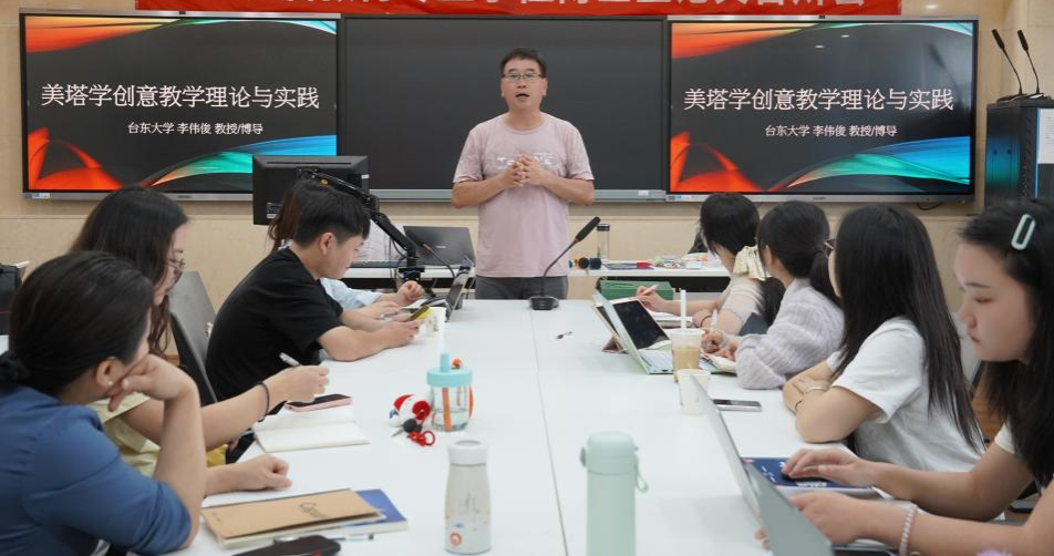 (通讯员 阮珍宁)6 月 24 日下午,台湾台东大学教育学系李伟俊教授应公司邀请,为师生们带来了一场主题为 “美塔学创意教学理论与实践” 的精彩学术讲座。李伟俊教授是台湾彰化师范大学特殊教育博士、美国哈佛大学博士后,在教育领域有着深厚的学术造诣和丰富的实践经验。本次讲座由刘德华教授主持,经理刘铁芳以及公司众多师生齐聚一堂,共同聆听这场充满创新与智慧的学术盛宴。