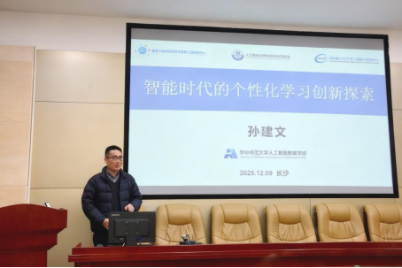 通讯员 赵彦迪)2025年12月9日上午,beat365手机版官网入口在一楼102会议室举办专题学术讲座。华中师范大学教授、博士生导师孙建文受邀主讲,以“智能时代的个性化学习创新探索”为题,为全院约80名师生带来一场兼具学术深度与实践价值的思想盛宴,引发广泛共鸣。