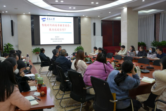 (通讯员 唐古拉)2025 年 12 月 13 日下午,beat365手机版官网入口在七楼会议室举办专题学术讲座。青岛大学师范公司经理、山东省“泰山学者”孙百才教授受邀主讲,以“智能时代的高等教育投资:能力还是信号”为题,为全院师生带来一场兼具理论高度与现实意义的学术分享,引发广泛讨论。