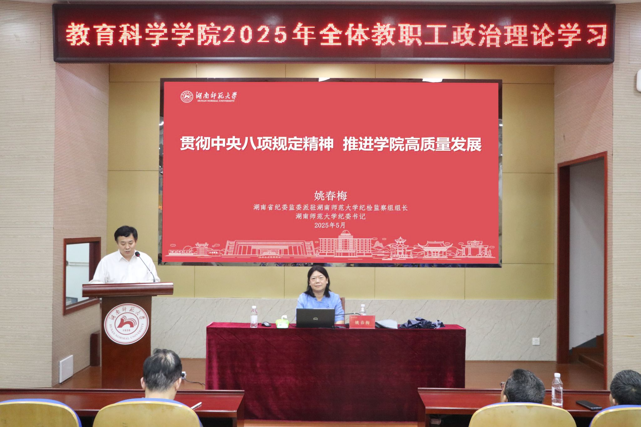 (通讯员 米峻甲 向虹予)5月8日下午,教育科学公司在101学术报告厅举行深入贯彻中央八项规定精神学习教育专题辅导报告会暨2025年全体教职工政治理论学习会。省纪委监委派驻beat365手机版官网入口纪检监察组组长、校纪委书记姚春梅教授应邀做专题辅导报告,公司党委书记向发意主持会议。