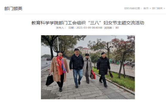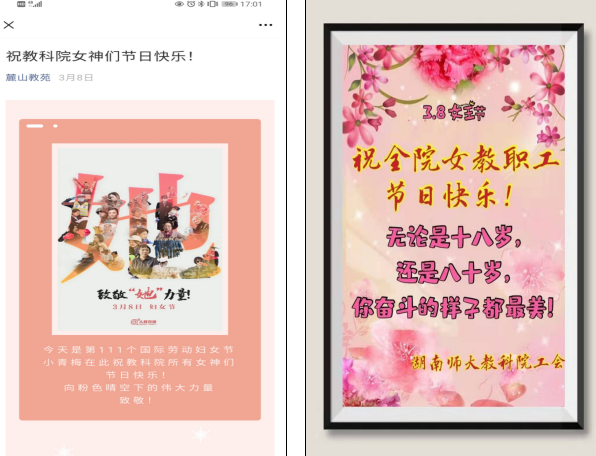 三、组织开展女教职工特色活动。制作微信推送致敬“她”力量,推出公司部门工会专属祝福图片,并组织“赏春景话真情齐奋进”主题交流活动,让全体女教职工感受到“三八”妇女节的专属祝福。
