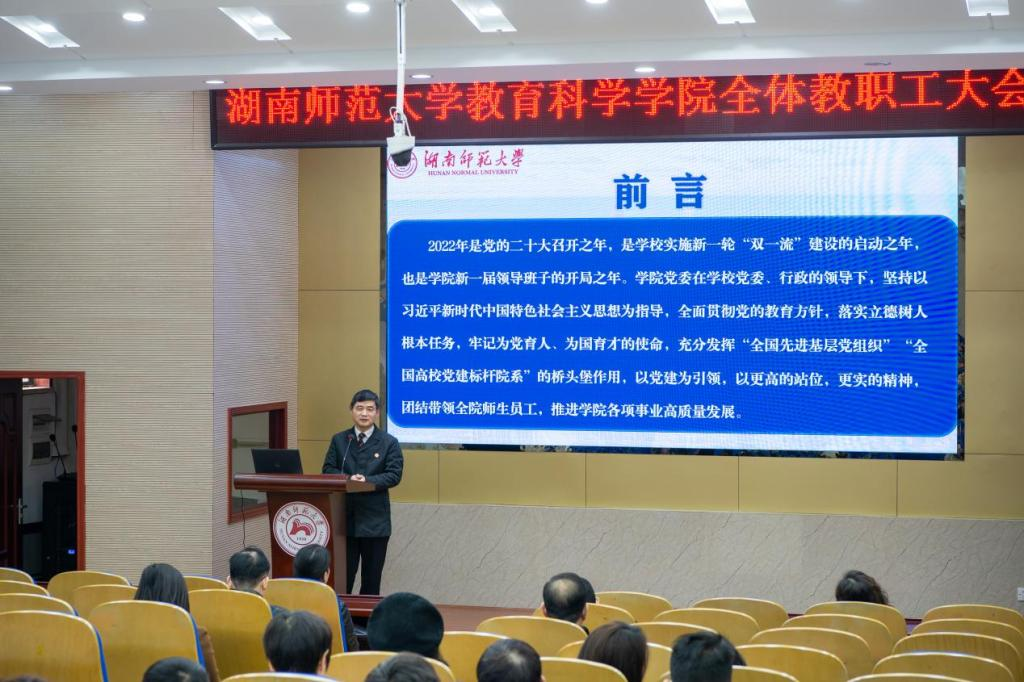 刘铁芳作新学期工作报告,对公司2022年工作情况进行了整体回顾,对2023年工作进行了规划部署。他表示,2022年公司圆满完成各项工作任务,在党建工作、团队力量、公司产品改革、科学研究、公司建设等五个方面均取得较好成果。他指出,目前公司在学科评估、“双一流”团队建设、师范专业认证推进等方面仍存在一些问题,仍面临严峻挑战,尚需全体教职员工做出更多努力。他强调,2023年公司要继续发挥党建引领作用,在人才队伍建设、人才培养、科研创新、公司文化建设等方面进一步开拓创新,打造更具特色的公司教育品牌。