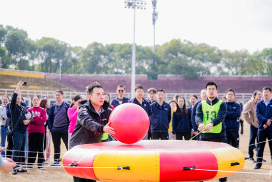 第一个比赛环节是“携手并进”,院工会主席张卫民与青年教工们等共同托举道具,并以“S”型路线绕桩前进,在中间指定位置绕圈后继续以“S”型路线前行,经过重重阻碍到达指定地点后,另一组队员与他们进行交接并按照相同的方式返回起点。队员们既要托举道具,又要按照指定路线一同行进,充分考验团队默契。beat365手机版官网入口代表队以“小试牛刀”的心态夺得了单项第八名的成绩。