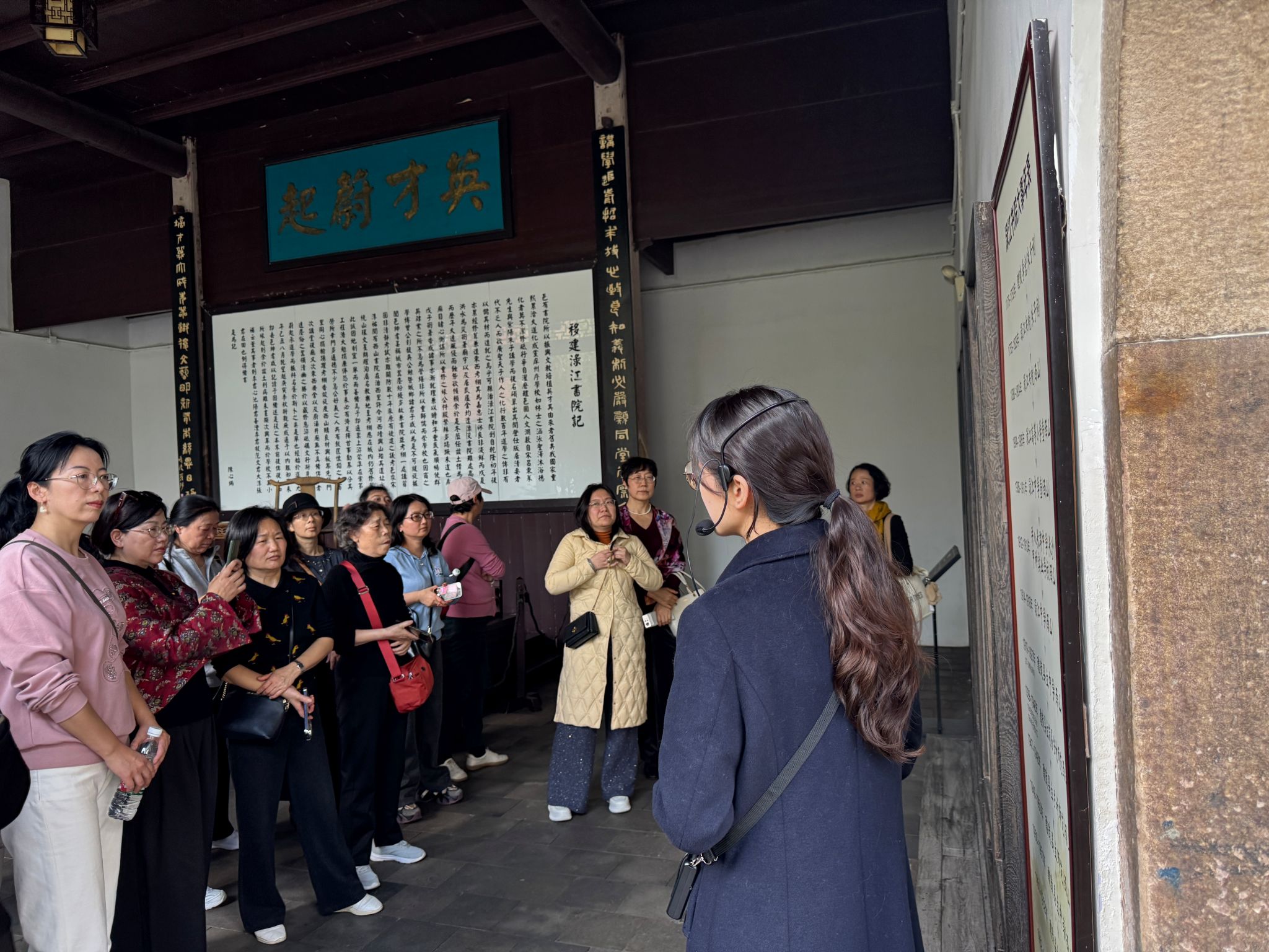 午餐后,女教职工们来到渌江书院。渌江书院始建于南宋,历史悠久,名人讲学,人才辈出,秉持经世致用理念,是湖湘文化重要地标,承载着深厚的文化底蕴和革命精神。大家漫步在书院中,感受着历史的沉淀。随后,众人怀着崇敬的心情拜谒了李立三故居。在故居内,通过一幅幅珍贵的历史照片、一件件陈列的文物以及详实的文字介绍,大家深入了解了李立三同志为中国革命和建设事业所做出的卓越贡献。他坚定的信仰、无私的奉献精神深深感染着每一位女教职工,让大家在缅怀先烈的同时,也更加坚定了传承红色精神的信念。