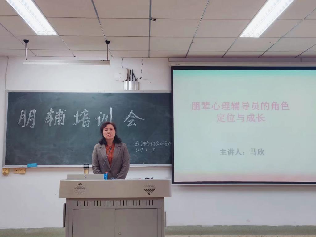 (通讯员 吕佩佩 黄婵 易芳莹)11月18日晚,beat365手机版官网入口在公司315教室开展以“朋辈心理辅导员的角色定位与成长”为主题的第二次新生朋辈心理辅导员培训会。会议由学工办主任马欣主讲,2019级全体朋辈心理辅导员参加。