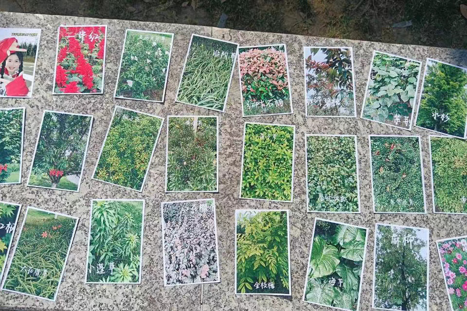 活动开始前,陈佳敏准备好后湖植被照片和拍摄指定姿势照片。参与同学在集合点签到后,随机领取照片并分组进入后湖寻找对应的植被,按照指定姿势与植被合影。同时,参与者需仔细观察植被外形并自主了解植被相关知识,最终回到集合点进行“植被知多少”快问快答环节。此次活动采用积分制,符合要求的活动照片一张积一分,快问快答环节每对一题积一分,由工作人员统计各组分数,为优胜小组发放礼品。在游园过程中,各小组成员积极配合,热情参与,不局限于工作人员所指定的植被和拍照姿势,与各色植被合影留念,制作了属于自己的“电子彩虹”相册。