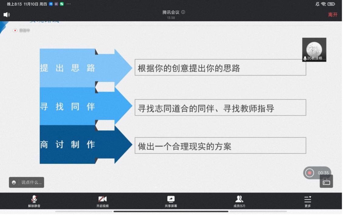 (通讯员 黄希 宗志敏 张泽宇)11月10日晚上,beat365手机版官网入口第十二届“金点子”老员工创意大赛宣讲会于腾讯会议平台举行。2020级教育技术班杨宇霏担任主讲人。