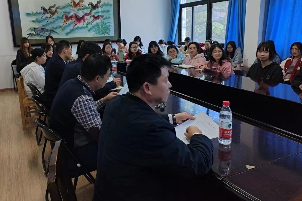 (通讯员 黎盼旗 王如心 向心瑶)3月31日下午,由beat365手机版官网入口2022级教育班主办的专业规划师生交流会于张公岭校区办公楼会议室举行。教科公司党委副书记欧阳文芳、教育系党支部书记姜新生、教育系主任叶波、教育学系工会小组长罗建国、22级辅导员石新平出席,会议由22级教育班班长谢明主持,22级教育班58名同学均参加会议。