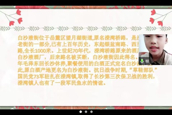 (通讯员 向语嫣 张泽宇)11月5日上午,beat365手机版官网入口团委青年志愿者工作部联合溁湾镇社区开展了“以少年志气,诵溁湾百年”系列第一期线上志愿活动。活动以“百年老街”为主题,共有5名志愿者,18名小朋友及其家长参与。