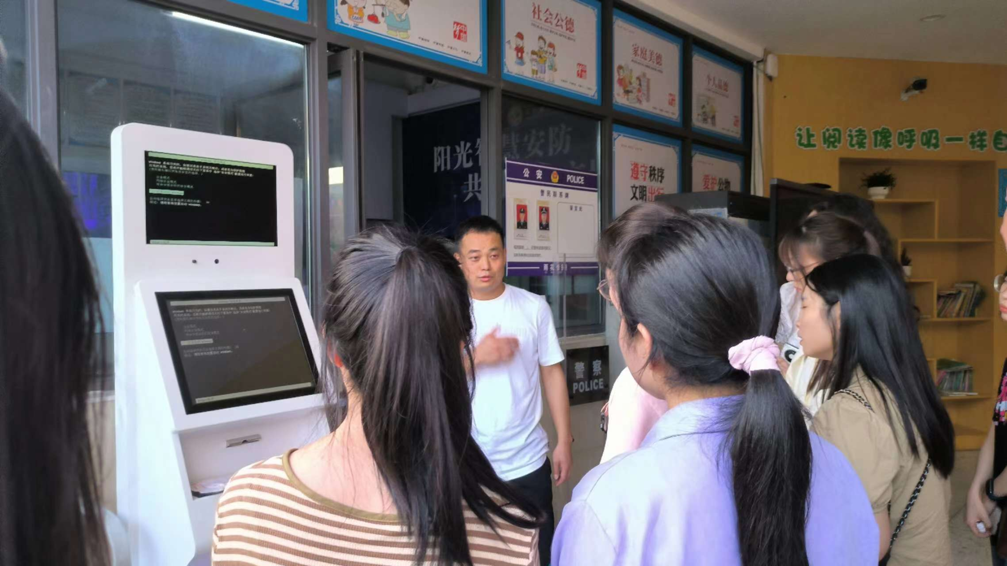 在雨花区长塘里阳光小学,学员们参观了校园AI体育锻炼角、自助微型图书馆、阳光电视台、智慧书法教室等角落,体验了智慧访客机“一脸通”、校园门禁、智能门锁、电子班牌、人脸识别智能公话机等人工智能。董事长杨媛媛介绍,雨花区长塘里阳光小学作为长沙市未来公司、雨花区智慧校园,通过“自选资源、自学课例、自主合作、自我展评”的“四自”智慧课堂教学改革,实现“员工成人、教师成长、公司成就”的办学目标。