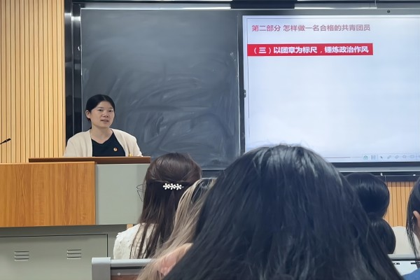 谭梦从认识中国共产主义青年团、怎样做一名合格的共青团员、如何向党组织靠拢三个方面进行授课。她结合2023年新修订的《中国共产主义青年团章程》,详细介绍了中国共产主义青年团的性质与特征,强调了深刻认识“党旗所指就是团旗所向”的重要性,旨在加强员工的正确认知。随后,她提出做一名合格的共青团员,要以团章为标尺,不断提高政治站位、提升政治修养、锤炼政治作风,并分别进行阐述。最后,她从申请入党的条件、入党动机、入党流程和入党申请书的撰写等方面,详细讲述了共青团员如何向党组织靠拢。她强调,积极向党组织靠拢的每位同学都要明确自身的意志与追求,要树立正确的入党动机。