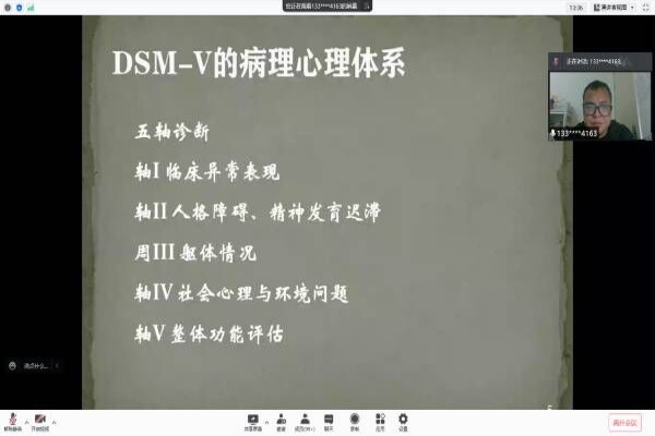 在此次分享会中,王玉龙详细地给同学们对变态心理学与精神病学进行了区分。他指出,变态心理学与精神病学的一大区别是精神病学主要依靠药物治疗,而变态心理学主要通过心理治疗。在带领大家对变态心理学产生一个初步的认识之后,王玉龙又分别从DSM-V的病理心理体系,精神障碍的分类,精神障碍的诊断方法三大方面为同学们进行了深入的讲解。期间他强调,在精神障碍的诊断中,真正重要的是症状。会议即将结束之际,王玉龙向同学们介绍了学习变态心理学的注意事项。