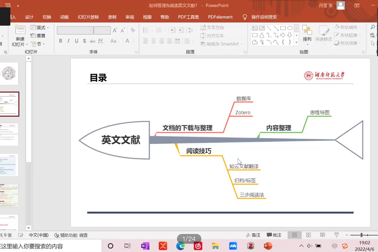 张丹莹以“如何管理和阅读英文文献”为主题,围绕“文献下载与排列”“阅读技巧”“内容整理”三个方面分别展开讨论,结构分明,清晰易懂。她表示本期精勤讲堂的主题是基于自身保研后才真正踏入科研行列的现状而选取的,并且抛出阅读英文文献时的许多困惑,引起大家的共鸣。讲述过程中,张丹莹结合自身阅读英文文献的实践经验与心得体会,向大家分享文档下载和管理的优质软件以及文献内容整理的方法。她指出,内容整理应先做加法,再做减法。加法即广泛收集信息,减法即筛选个人需要的内容,摒除多余无关的信息。此外,她还分享了三步阅读法等阅读技巧。第一遍读标题、摘要和插图;第二遍读引言和结论,并快速浏览论文的其他部分;第三遍阅读论文的全部内容,跳过不熟悉的复杂公式和专业术语。在讲堂的自由提问环节,张丹莹耐心解答同学们提出的疑问,积极鼓励同学们沉下心来阅读英文文献。