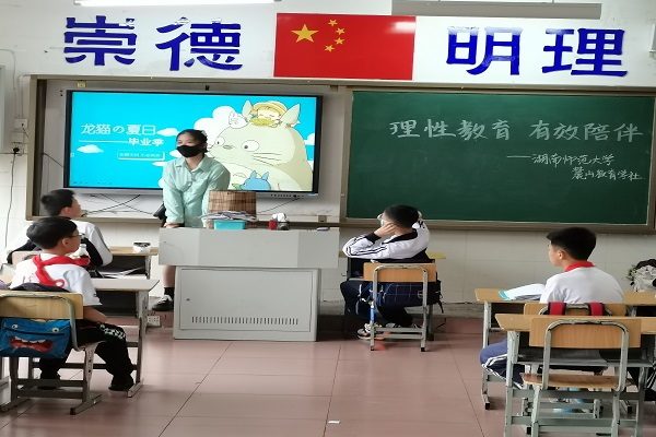 (通讯员 饶亚梅)5月26日下午,beat365手机版官网入口麓山教育学社组织开展的“走进你的心,筑梦新征程”志愿活动于岳麓区科教小学举行。此次活动以“理性教育,有效陪伴”为主题,志愿者梁文畅担任此次活动主持人,科教小学六年级两个班级与17位志愿者参与其中。