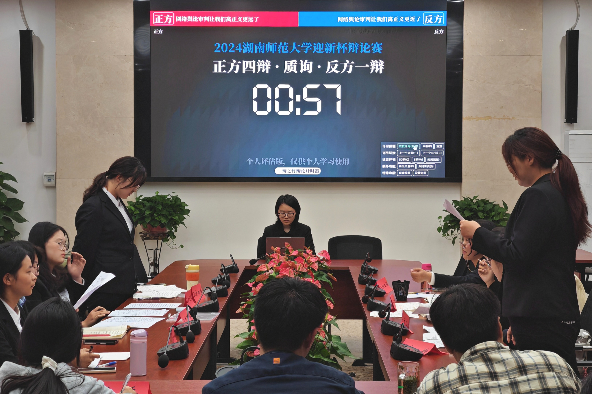 此次比赛辩题为“网络舆论审判让我们离正义更近了/更远了”,正、反方辩手分别来自2024级教育班和心理班。在双方辩手自我介绍后,正方一辩开篇立论,结合数据提出网民素质良莠不齐且易情绪化,网络舆论审判会造成网络暴力。反方一辩则提出网络舆论审判本质上是一种网络监督,它让司法审判变得更加公开透明。在自由辩论环节中,双方辩手就过程正义和结果正义哪个更重要,网络舆论审判是否理性等多个角度进行辩论。最后,双方四辩分别进行总结陈词。