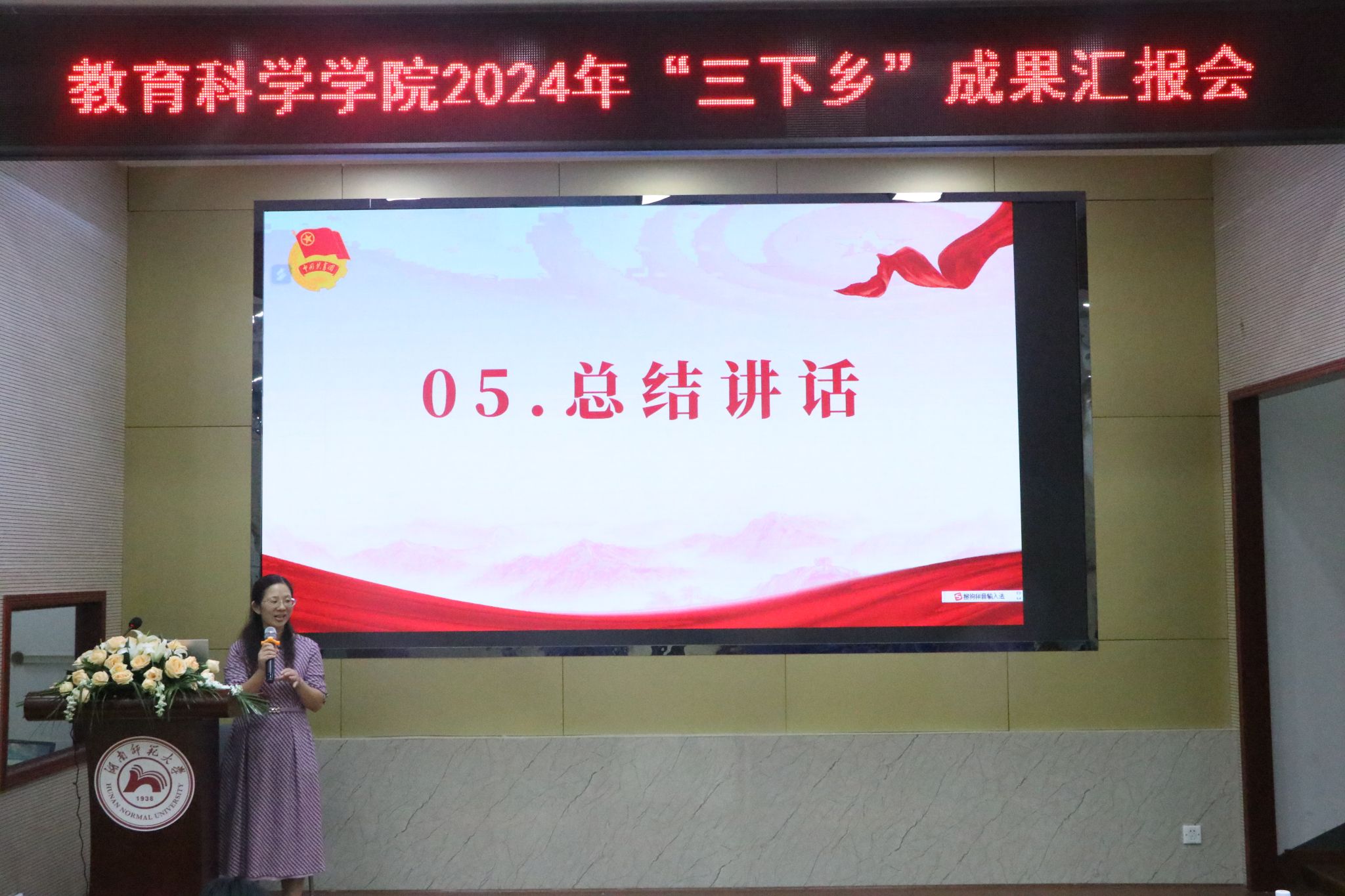 王赛波作总结讲话。她对所有参与的队伍给予了充分肯定,对各队伍的指导老师给予了感谢。她表示,“三下乡”是收获自我成长的极佳实践平台,是连接城市与乡村、促进教育公平的一项意义非凡的活动,是用自己的行动诠释青春力量的生动体现。她希望,未来能有更多新面孔参与“三下乡”实践活动,以实际行动展现青春最美丽的姿态,为教育强国建设添砖加瓦。