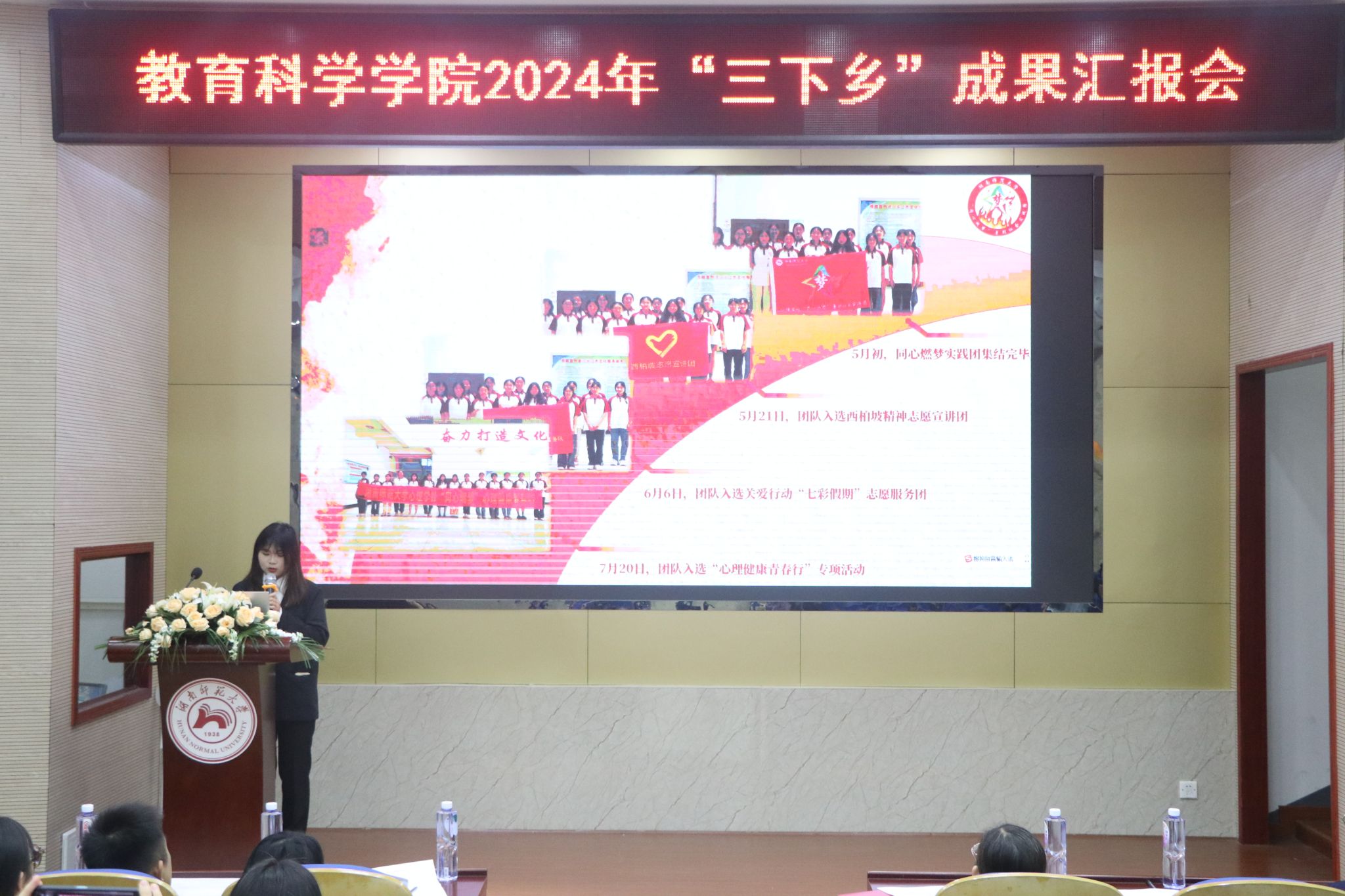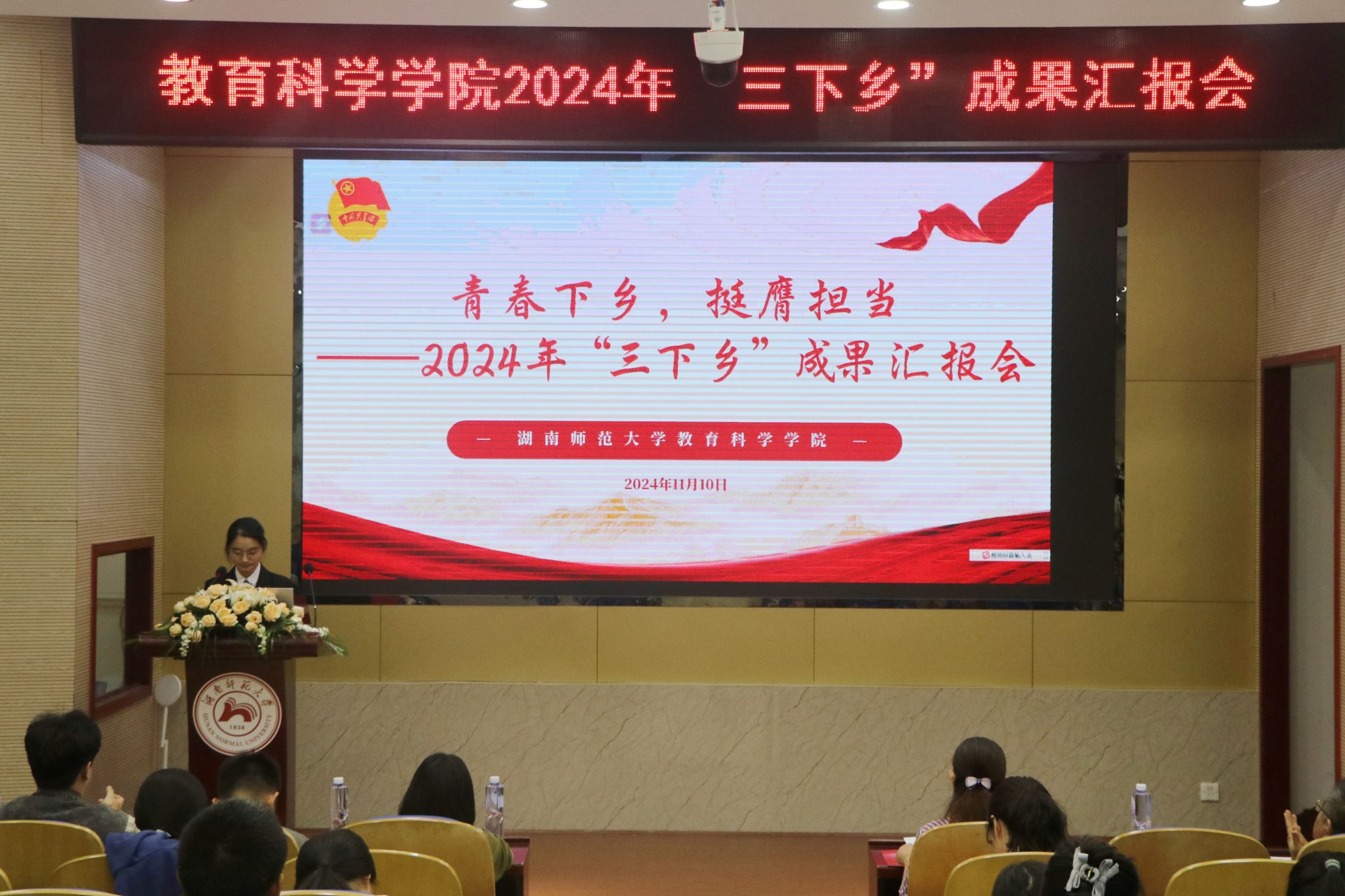 (通讯员 柳知佩 朱文倩)11月10日晚,beat365手机版官网入口(以下简称“教科院”)于院101报告厅举行了2024年“三下乡”暑期社会实践成果汇报会。公司副处级专职组织员王赛波、团委书记谭梦、青年教师兼职团委副书记钟雪、实践团指导老师代表覃兵、罗帅、谌衡及学工办庞瑞宇、石新平出席汇报会。