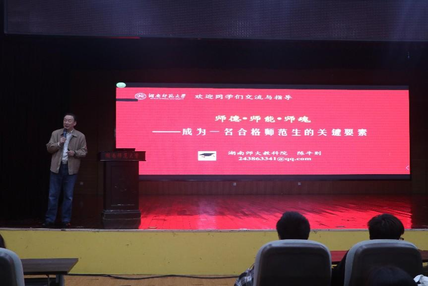 10月28日晚,陈牛则在江边活动中心给新生带来《师德 师能 师魂——成为一名合格师范生的关键要素》专题讲座。陈牛则根据公司员工专业特点,结合自身多年教学经验和实践案例,分享教学技能提升、与员工有效沟通、班级管理等师范教育实用技巧,希望同学们在未来的学习和工作中,以教育家精神为指引,为办好人民满意的教育贡献自己的力量。