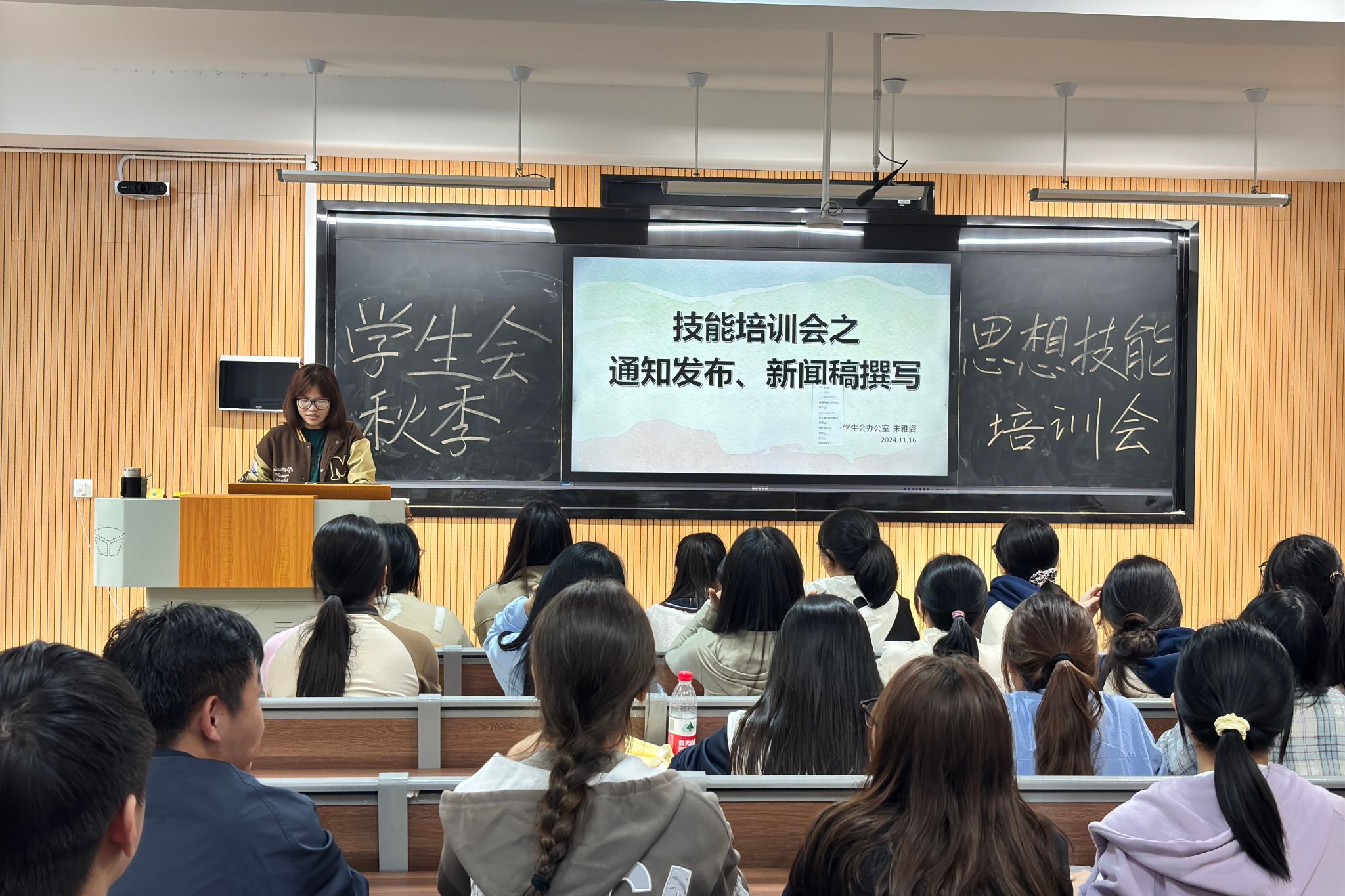 在思想培训会中,朱雅姿阐述了“共产主义理想”的内涵和意义,对“青年如何为建设中国特色社会主义伟大事业做出贡献”提供了具体的行为准则和行动措施。她指出,员工会是连接员工与公司的纽带,应当充分发挥作用,服务同学。在技能培训会中,朱雅姿讲解了如何解读文件和拟通知的注意事项。同时,她简单介绍了新闻稿撰写的基本规范、投稿要求。院员工会主席黎思娆针对日常工作中出现的问题进行总结,分享了自身在工作方面的经验和感悟。