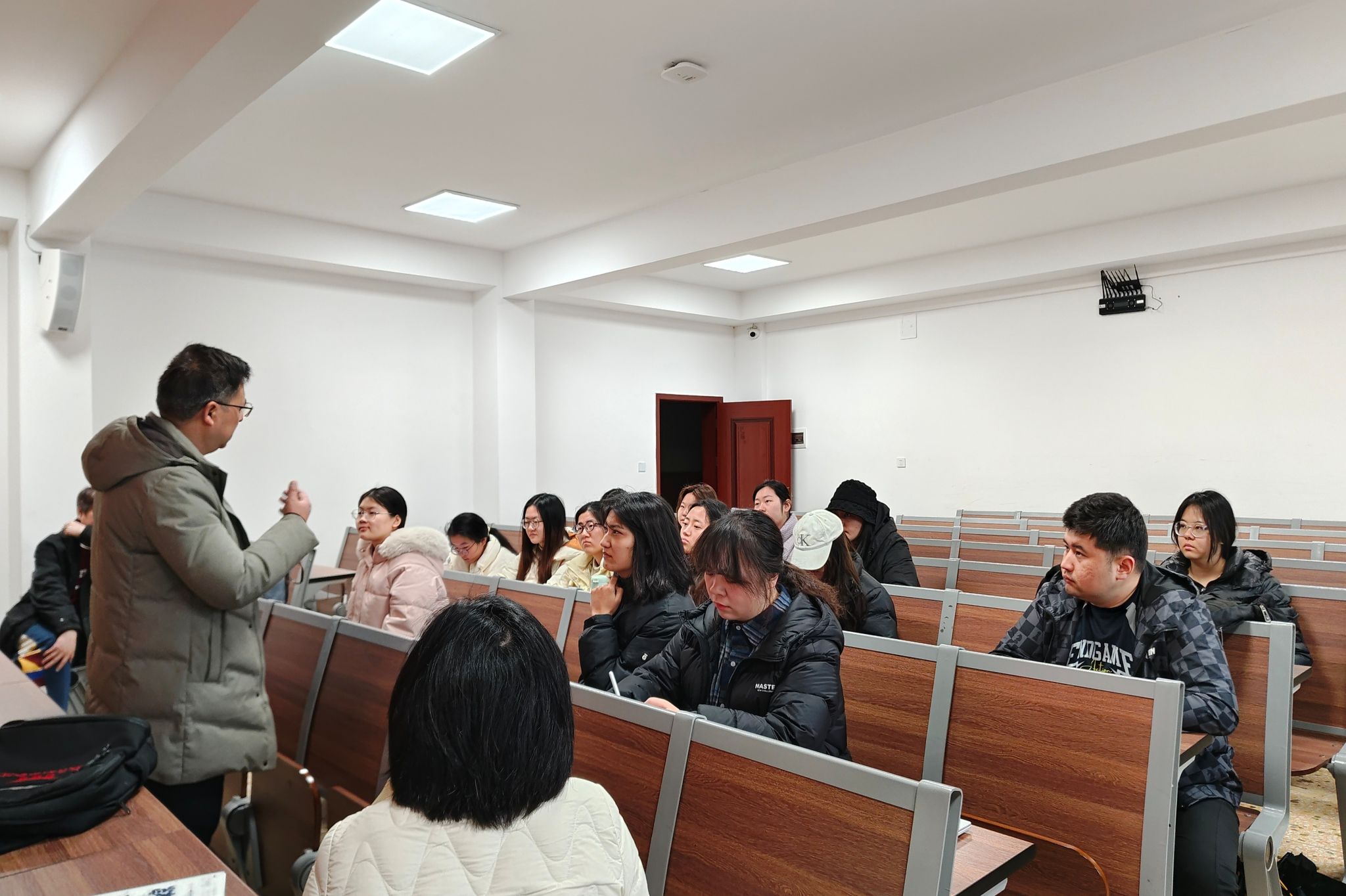 会议过程中,三位指导老师依次部署实习任务。罗建国详细介绍实习的三大核心任务,即教学实践、班主任工作与教学调研,并要求队员注重仪容仪表与课堂教态,配合校方巡查;同时将队伍细分为四组:教学组需统筹磨课评课、教学指导;宣传组负责实习工作活动推送与优秀事迹报导;后勤组保障团队安全和实习物资购买;活动组组织团建、协调礼品筹备及协调团队关系,并要求各组要分工协作、密切配合,共同营造“互助友爱、积极向上”的集体氛围。彭道林就实习规范作出补充说明:全体成员需提交无犯罪证明,确保实习流程合规;实习队员入校前需进行素质测试,提醒队员认真备课,确保教学设计严谨。李政云老师则从教学实践出发,鼓励实习生“自信表达、大胆创新”,强调课堂教学需贯彻政治教育导向,融合知识传授、方法引导与价值观塑造,落实“立德树人”目标。