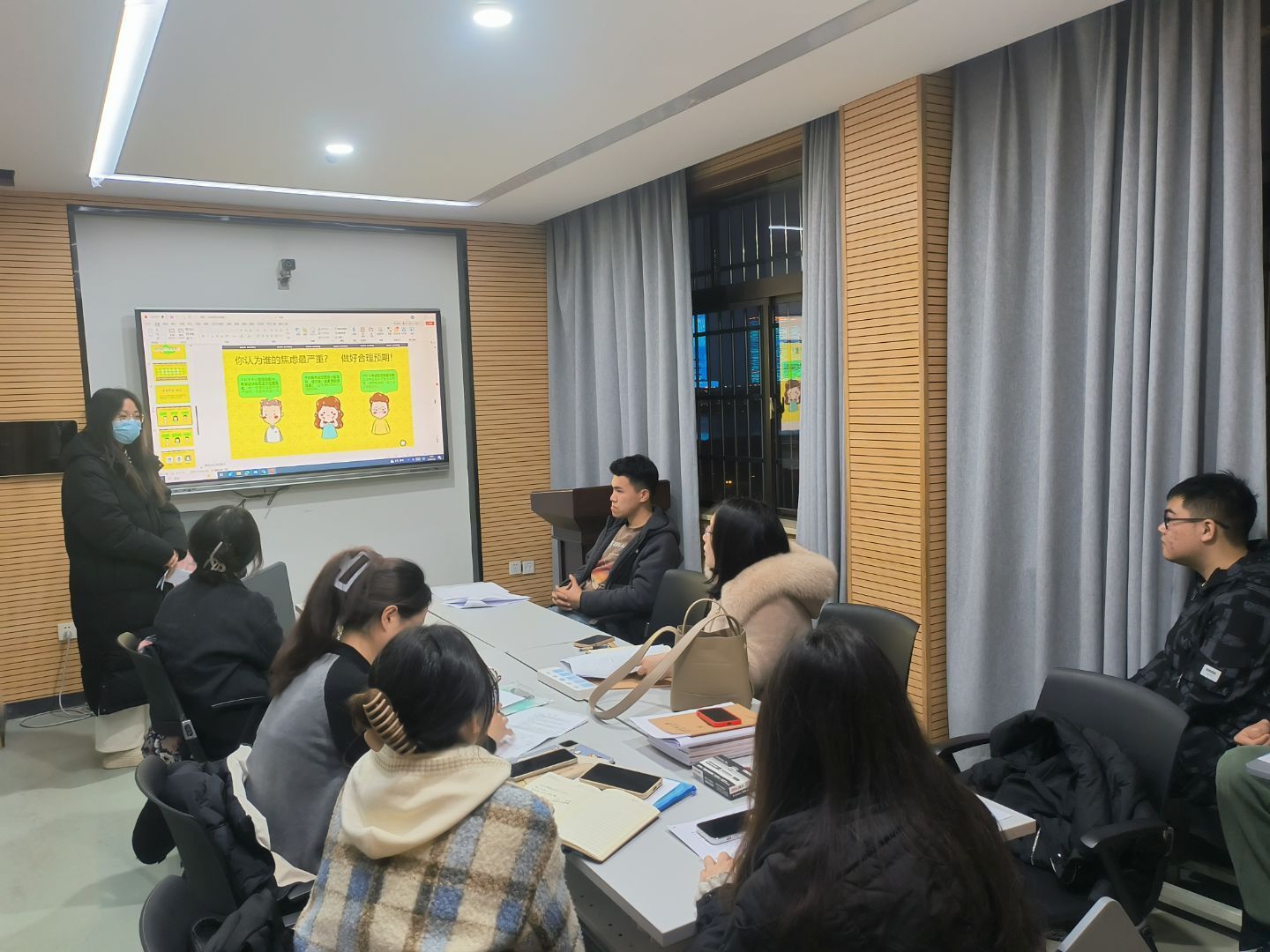 本次试课采取分组试讲形式,全体队员依次进行10分钟的教学展示。首次登台的队员们虽略显紧张,但仍展现了扎实的学科素养与教学热忱。通过结构化课件设计和梯度化课堂活动展现教学逻辑;创新运用游戏化教学和多媒体资源,实现知识性与趣味性的平衡。充分体现了心理学专业的教学特色与创新思维。两位指导老师对队员们的试讲表现给予充分肯定,并针对课件设计、课堂互动等环节提出改进建议,强调从教案设计到课堂实施需始终贯彻“以员工为中心”的理念,鼓励队员在后续实践中深化教学反思。