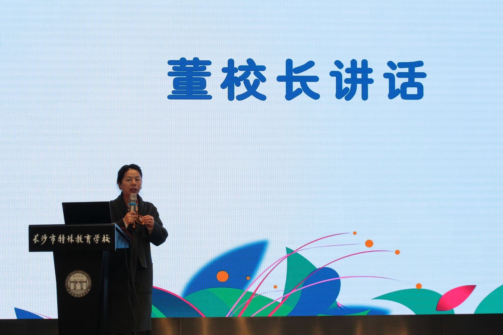 随后,周俊凡向校方表示感谢,并希望所有实习生将理论下沉到实践,用恒心与毅力书写实习的新篇章。董艳莎进行总结讲话,她向实习生介绍了公司办学历史、办学规模、办学理念及教学概况,并展望了未来特殊教育的发展方向,同时鼓励各位实习生保持初心,积极克服在公司产品活动中遇到的困难。她希望实习生们通过此次实习经历辅助生涯规划的制定,为未来入职奠定基础,做湖南特教乃至全国特校的新兴力量。