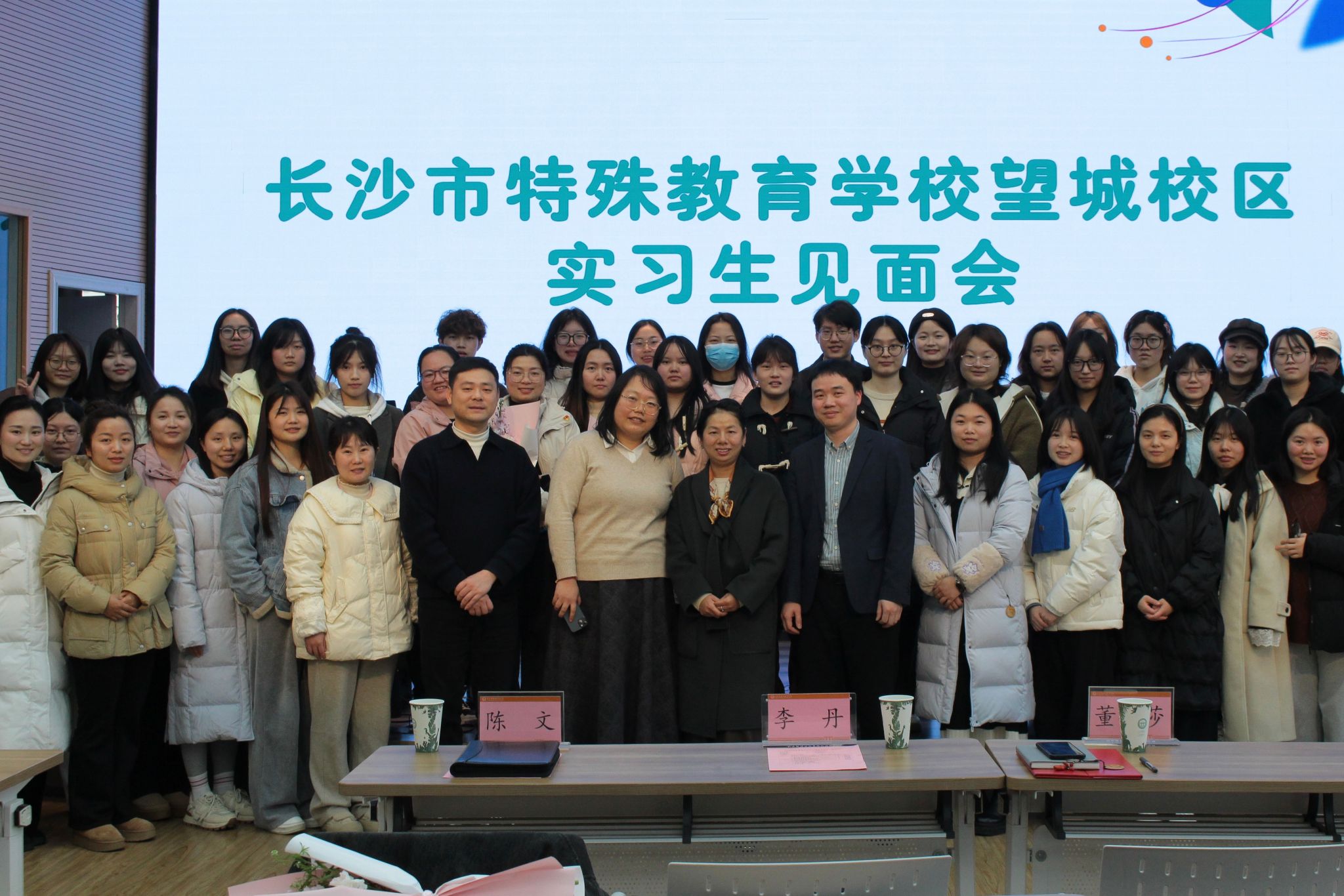 (通讯员 李斌 彭多 黎思娆)3月10日上午,beat365手机版官网入口(以下简称“教科院”)22特教赴长沙市培智特殊教育公司(以下简称“长培”)实习队于多彩小剧场举行了实习生见面会。副董事长董艳莎、校统筹办副主任兼启智部主任陈文、课程管理中心副主任彭馨叶、部中层干部代表、实习队指导老师李丹、周俊凡、全体带教老师以及实习生参与了此次活动,由长培教师邓佳梅担任主持人。