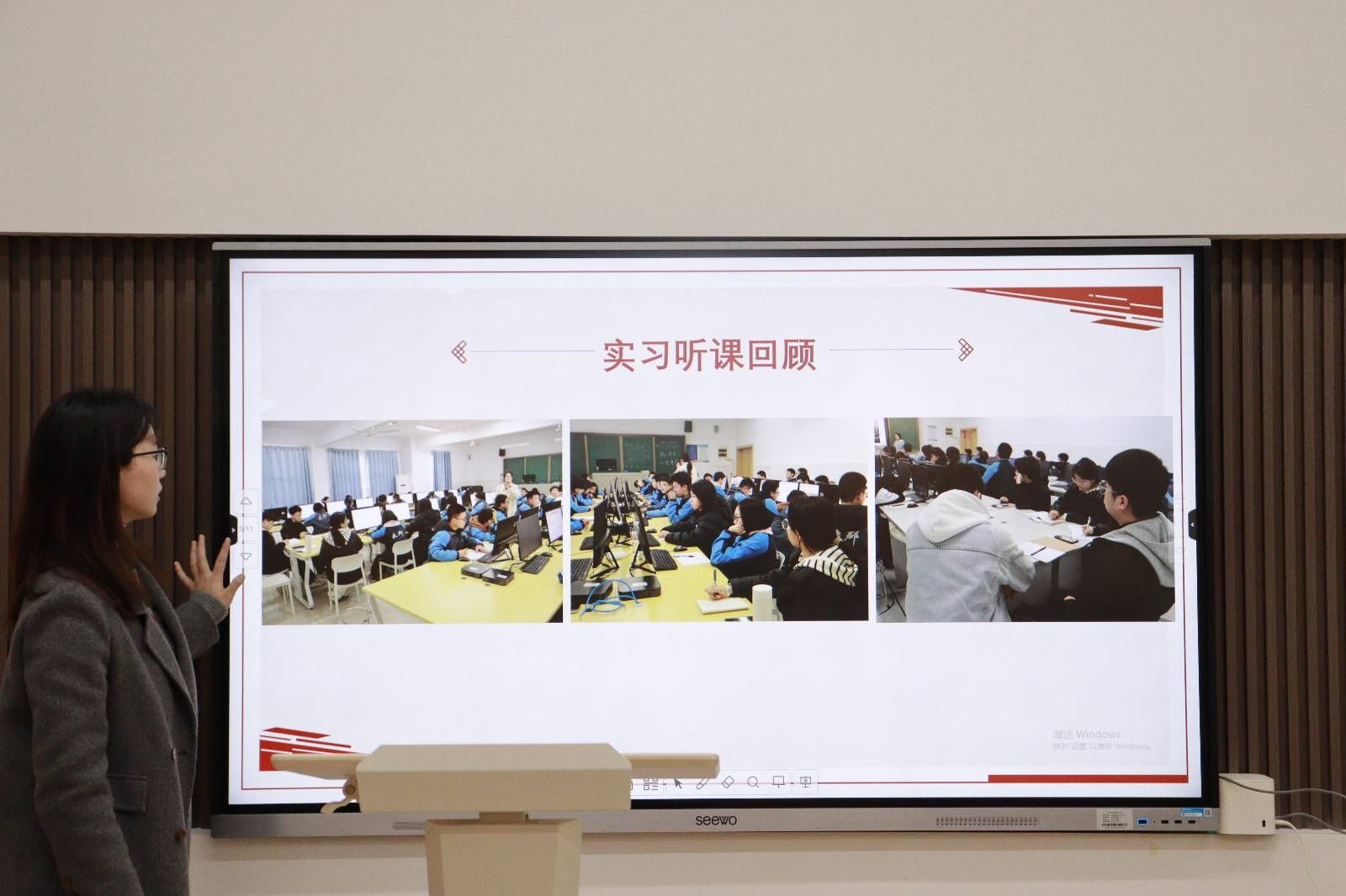 在成员总结环节,实习队员们轮流讲述着本周实习的收获与困惑,分享从理论到实践的跨越式成长。队员曾芷柳表示,我看到了真实的信息技术课堂,也意识到了在备课时需要根据员工的特点来设计教学内容和方法,做到因材施教。