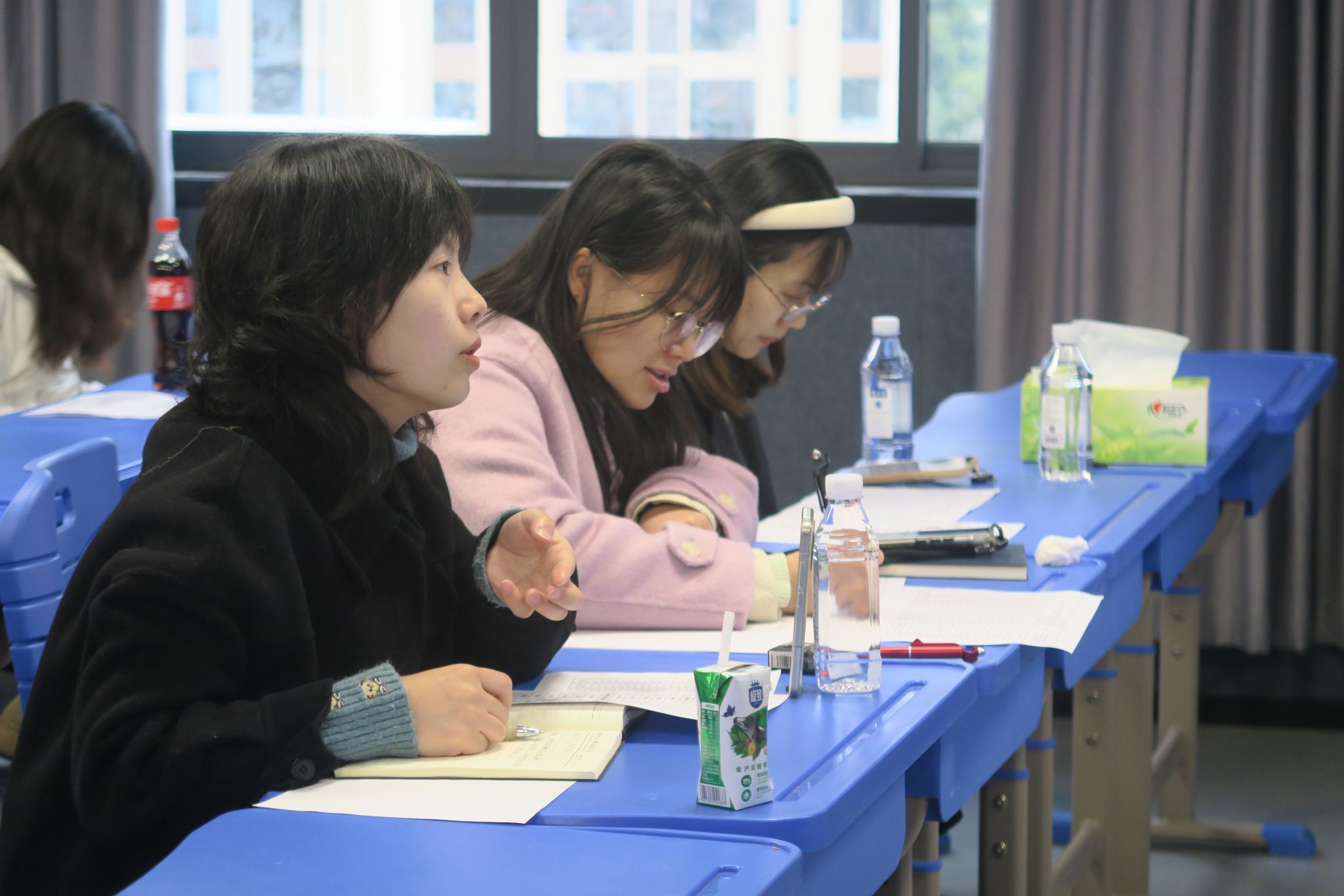 此次试讲活动包括队员轮流试讲和教师指导点评两个环节。在前两次的试讲经验的基础上,实习生们精心打磨教学内容,优化教学活动设计,灵活运用多媒体课件、情景模拟等手段,打造兼具体验性、互动性和包容性的心理课堂。课堂内容涵盖了初中心理健康的重点关注主题。杨翠妹在PPT制作、活动设计等方面给予了肯定,并针对教学中的不足提出了改进建议。她建议队员们关注初中生的日常兴趣点,将教学重心转向员工的自主思考与表达,减少专业性知识的灌输,以更好地吸引员工注意力,提高课堂参与度。张兴宇强调,队员们应提前预设员工的课堂反馈,做好心理预期,及时规避或化解可能出现的不当言论。