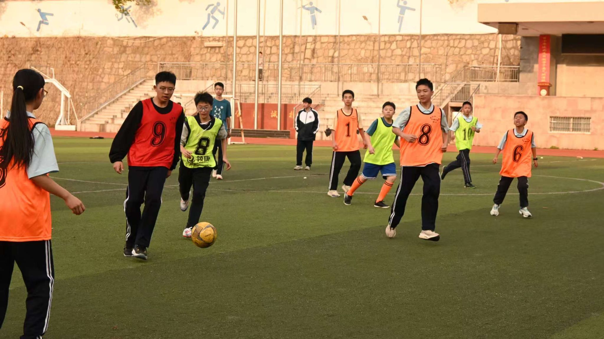 赛前半小时,工作人员已完成场地划线、器材检查及裁判规则讲解。随着主裁判哨声响起,身着荧光黄马甲的初一一班前锋率先带球突破,连续晃过两名防守队员起脚抽射,引得场边举着“2401足球队加油”手绘加油牌的女生们发出阵阵欢呼。初一八班守门员飞身扑救化险为夷,随即发动快速反击,外场队员接长传后单刀突进将比分扳平。