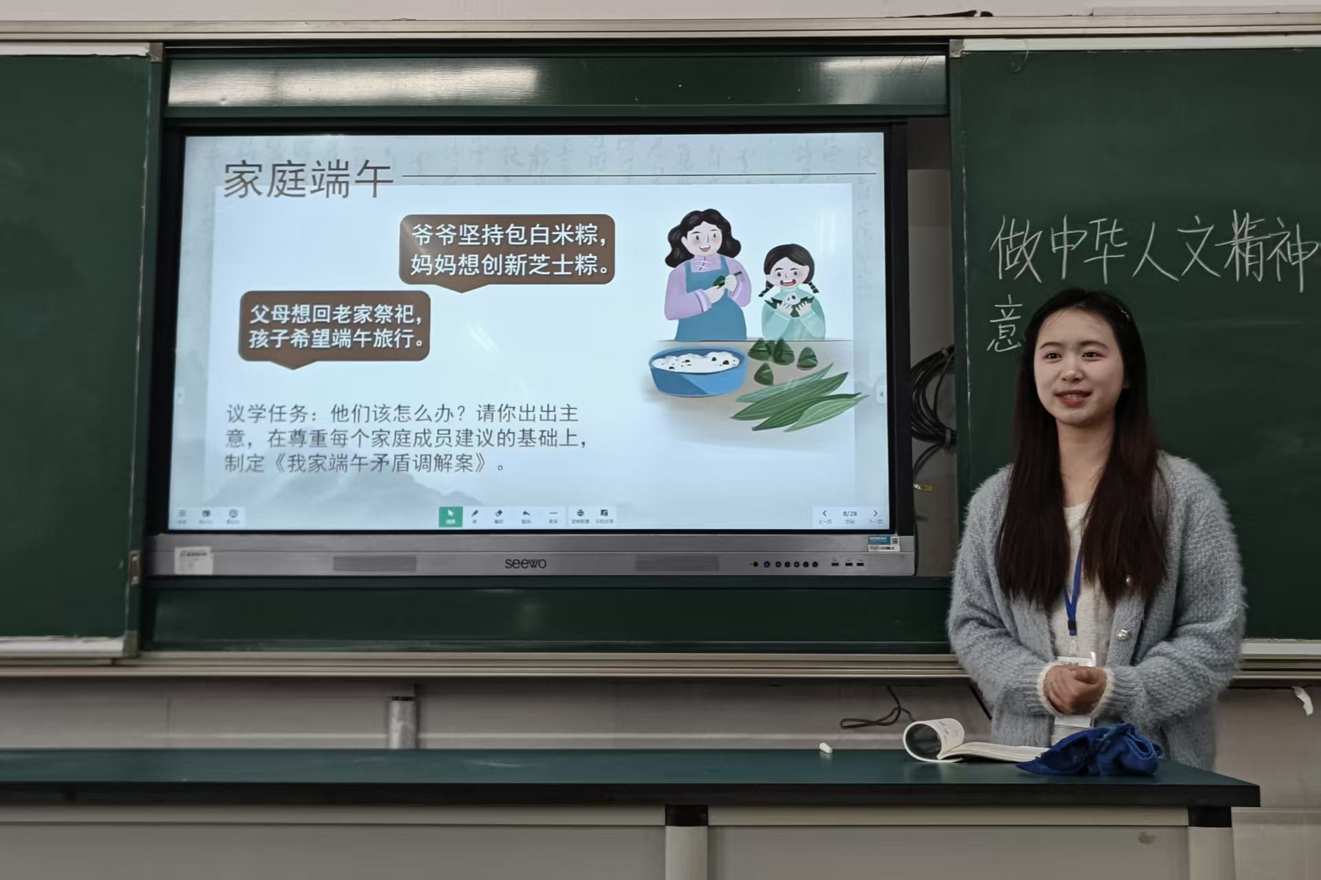 活动分为试课展示与点评指导两个环节。试课前期,三位主讲人设计课程教案,并配套制作课件与逐字稿。曹诗杰以“人要自强”为主题,通过视频导入、小组讨论等方式引导员工理解自强精神的内涵;管丽萍围绕“做中华人文精神的弘扬者”,结合案例分析,探讨中华传统文化的当代价值。徐章林则以八年级“国家权力机关”课程为切入点,通过逻辑推演与动画演示,深入解析知识点。