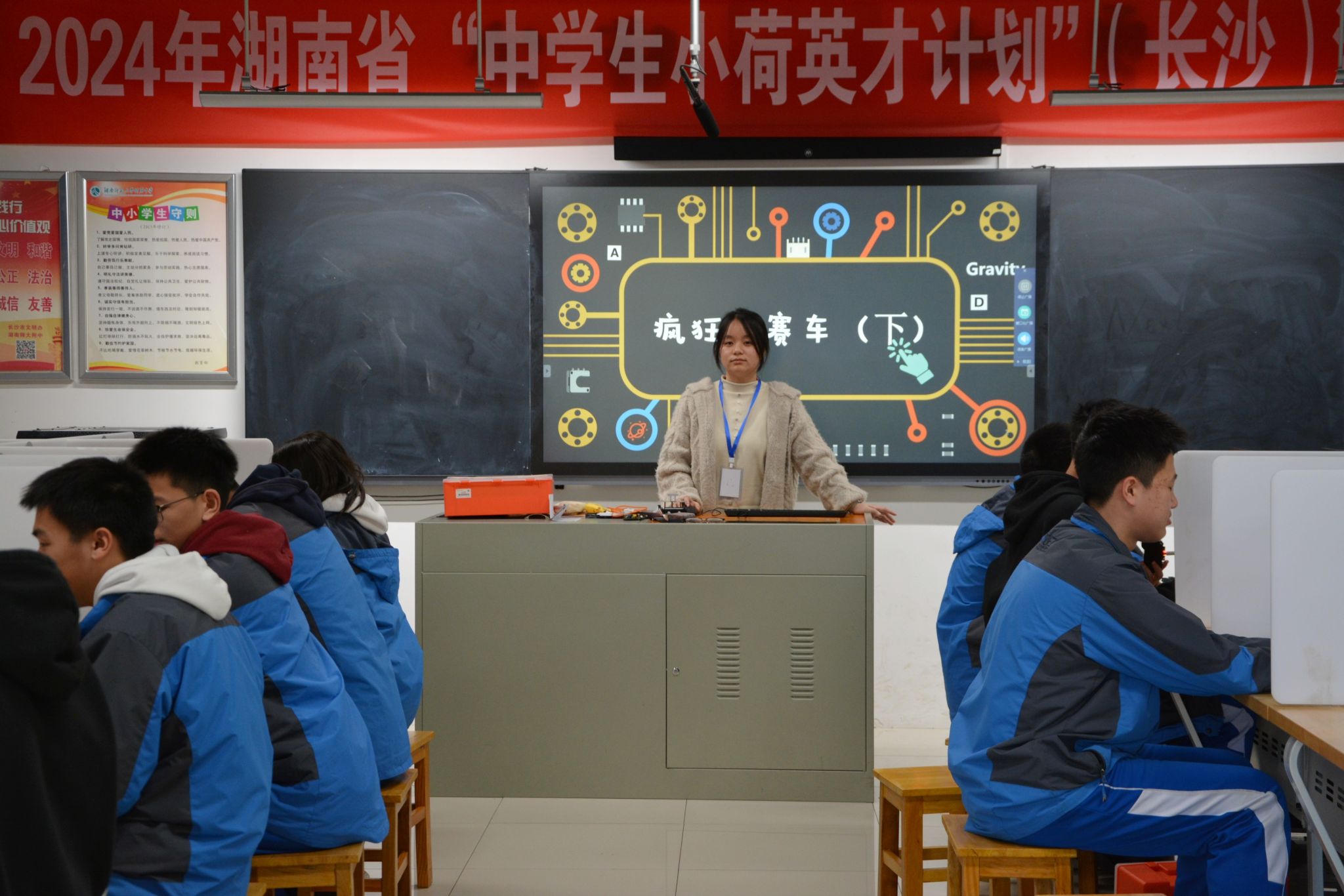 (通讯员 张佳琪 张金敏)3月27日,22教技赴师大附中实习队成功开展人工智能项目式课程《疯狂的赛车》。该课程由师大附中教师孙沅指导,实习队成员廖伊啸、张佳琪、王玲珑、申津熙共同设计授课,以Mind+编程软件与麦昆Plus智能赛车为工具,通过“学习-合作-创新”的教学模式,引导员工探索人工智能技术的实践应用。
