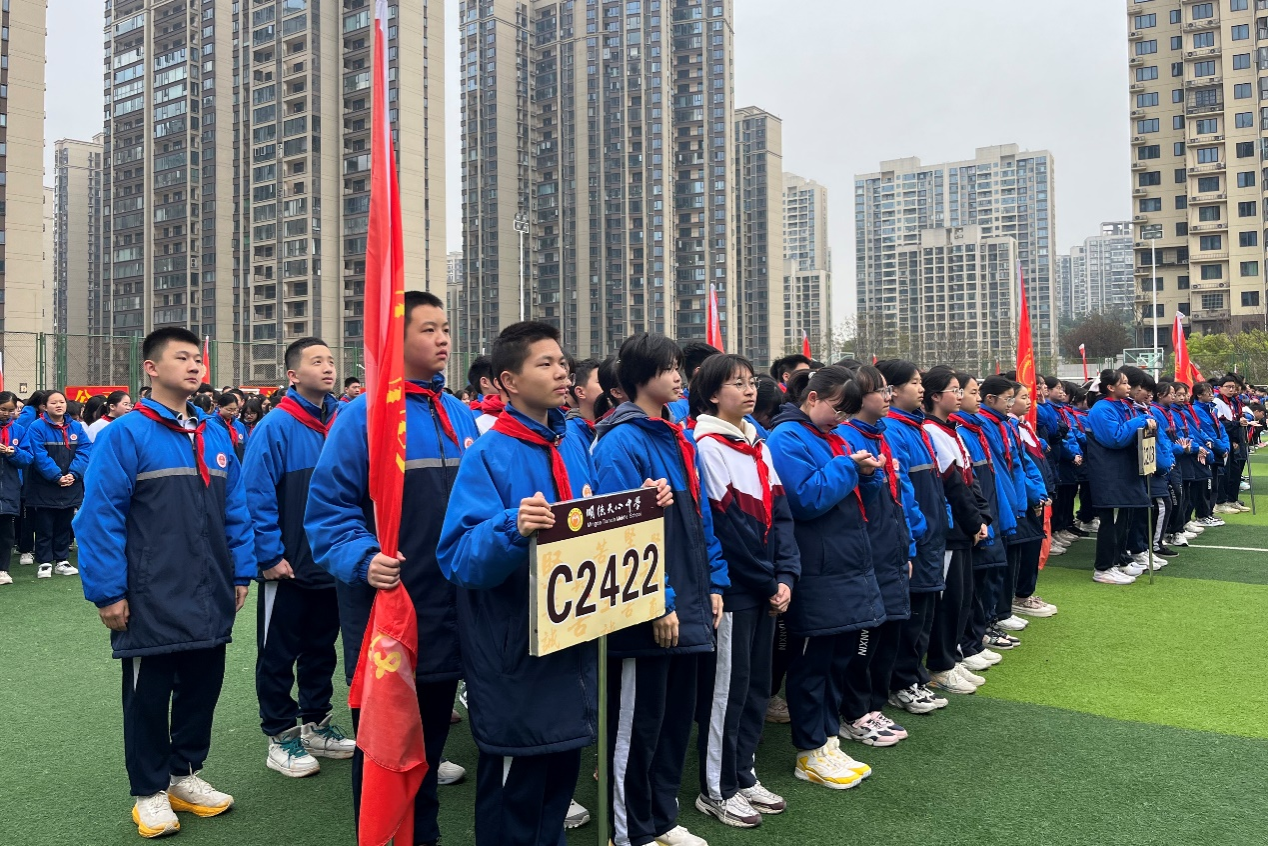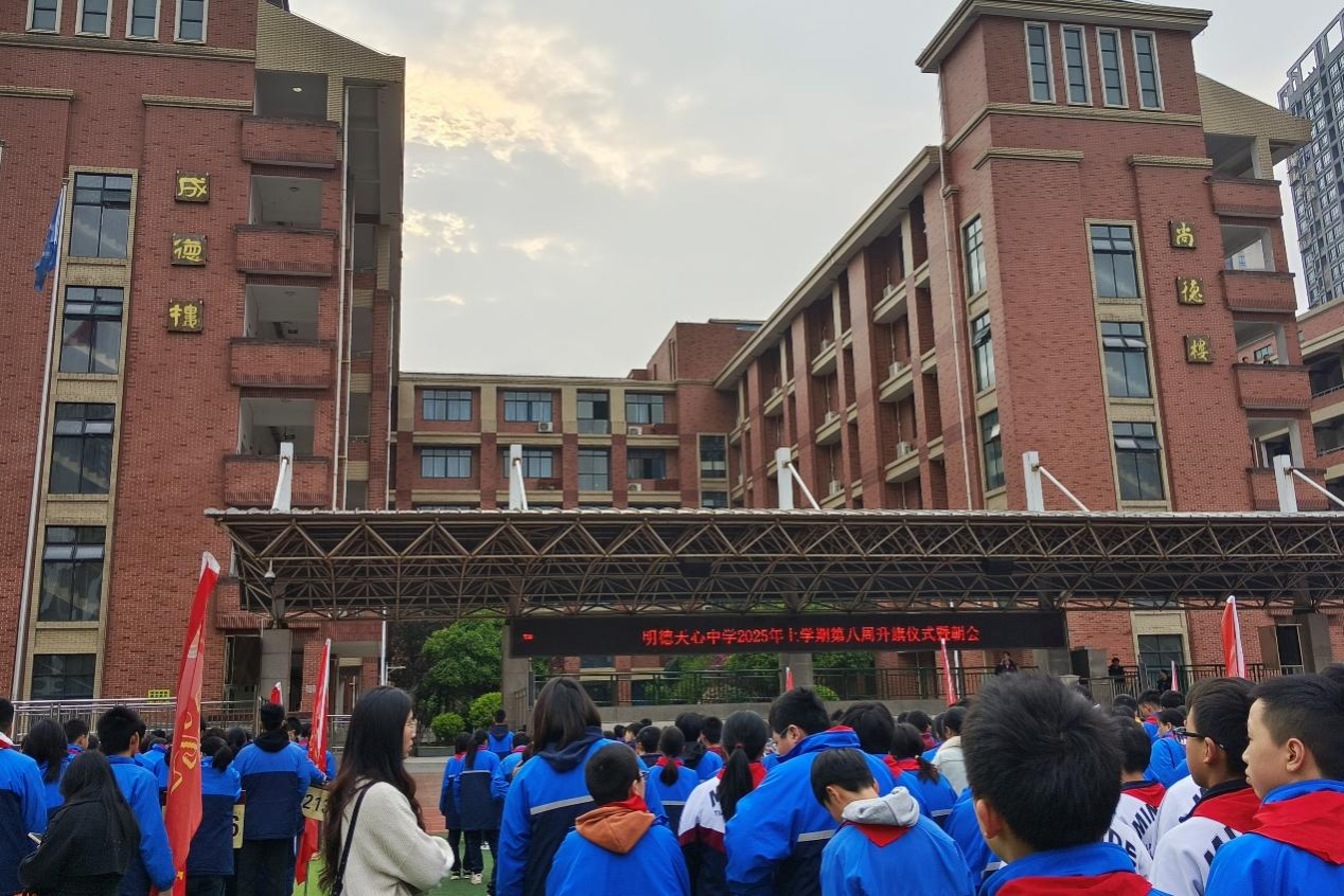 (通讯员 王瑞珠 陈慧渝)为了进一步加强实习队成员与实习公司的联系,增强成员的归属感和认同感,3月31日上午,2022级教育班赴明德天心中学实习队于明德天心中学田径场参加该校第八周升旗仪式暨朝会,此次升旗仪式暨朝会由明德天心中学初一年级员工主持,明德天心中学全体师生及实习队全体队员参加。