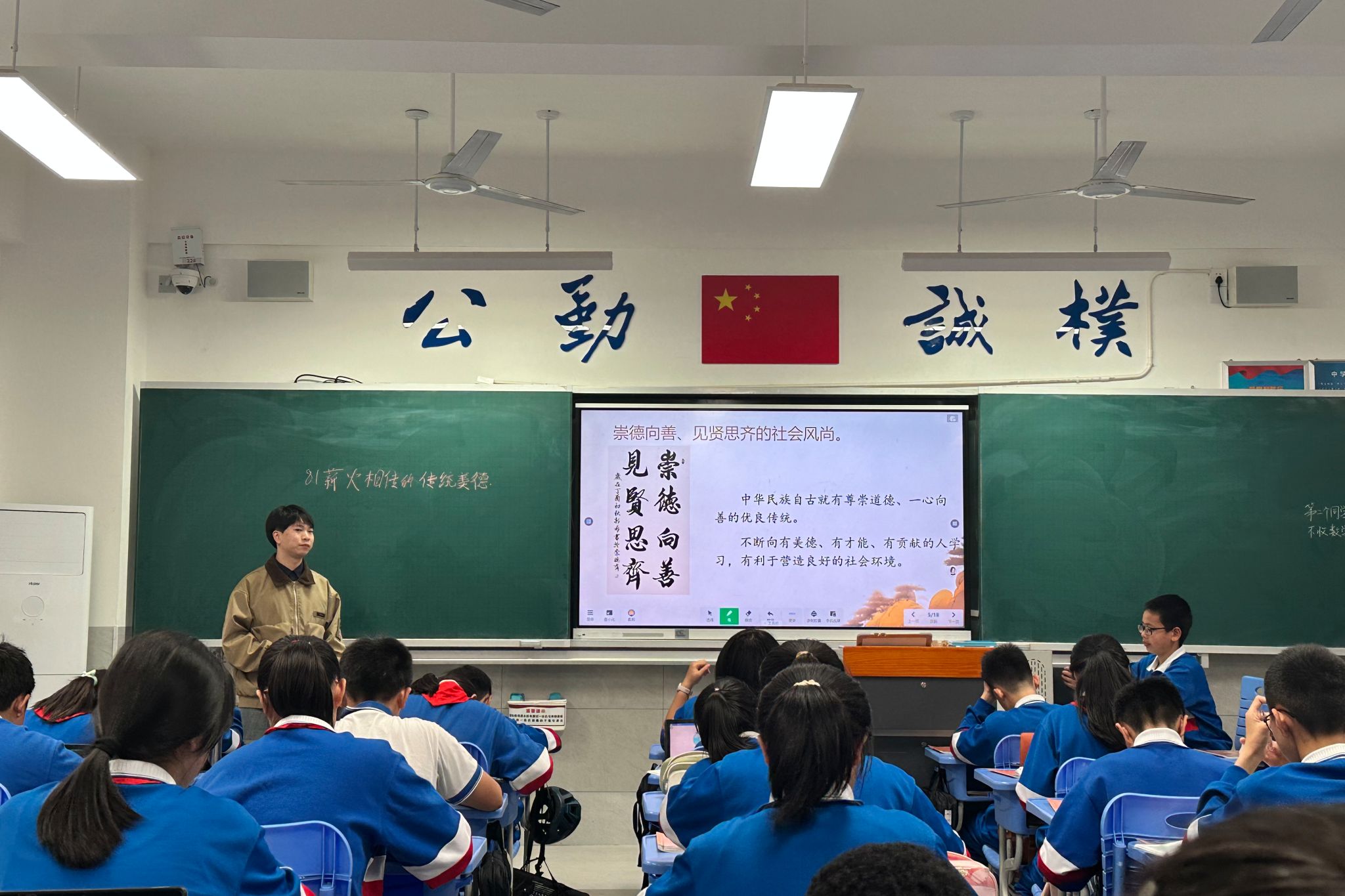 课堂上,吴俊华以书信为线索,讲解传统美德的内涵与价值,通过故事分享重点突出“孝悌忠信、礼义廉耻的荣辱观念”,并结合戍边战士陈祥榕的案例增强员工的爱国情怀;刘章明深入挖掘历史人物岳飞,以岳飞的成长顺序串联中华传统美德的内涵和价值,并通过课堂互动、视频朗诵的形式活跃课堂气氛。