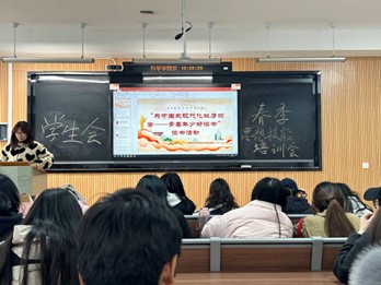 在思想培训会上,朱雅姿借用习近平总书记的故事,讲解了自身阅读《论党的青年工作》一书后的心得,表达了新时代青年要多读书,读好书,好读书的观点。她指出,员工会是公司的服务型组织,应发挥带头作用,营造良好的读书氛围,引导会内成员养成良好阅读习惯并提升自身修养,以此更好地为公司服务、为同学们提供帮助,为中国式现代化挺膺担当。