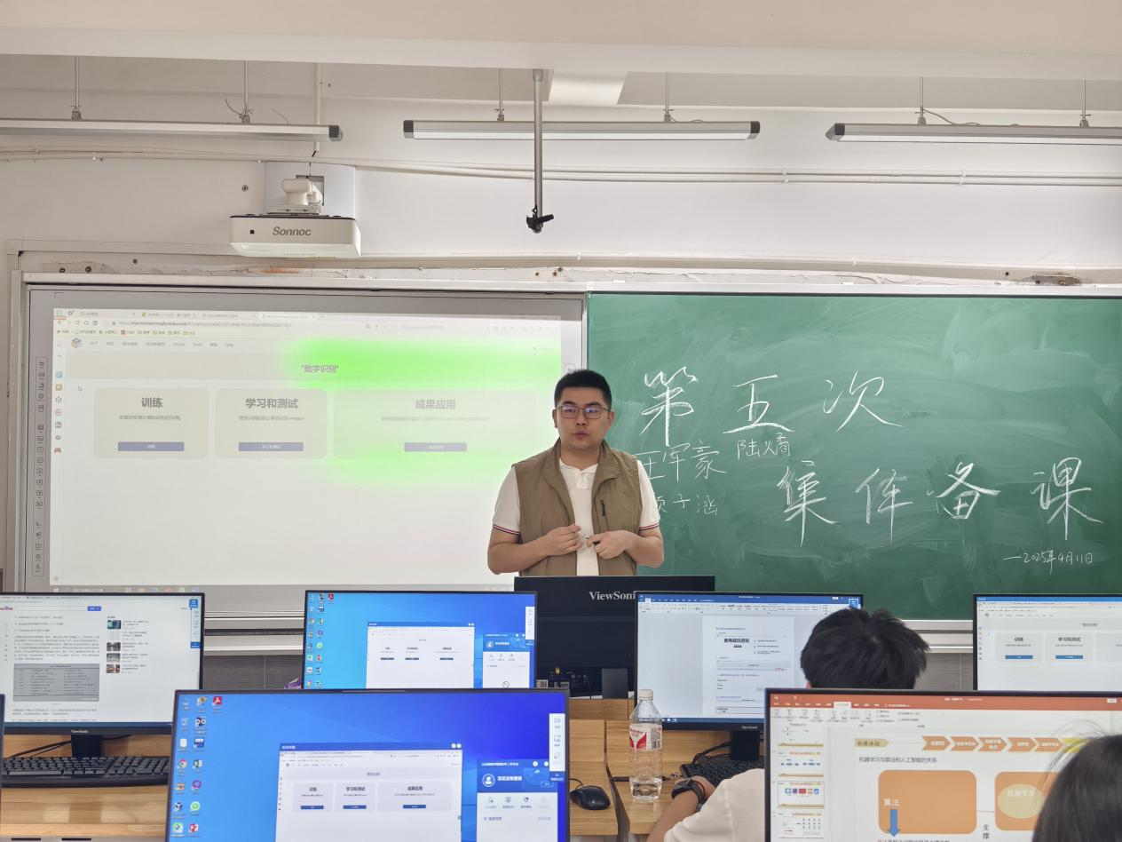 活动伊始,实习队三个小组依次进行说课展示。第一组以“人工智能的三个发展阶段”为脉络展开教学设计,第二、三组则围绕“机器学习”主题构建课堂,分别运用案例分析与平台实践展现不同教学路径。三组教学设计各具特色,凸显实习队成员对课程标准的精准把握,通过教学转化机制实现课程标准与课堂实践的创新衔接。
