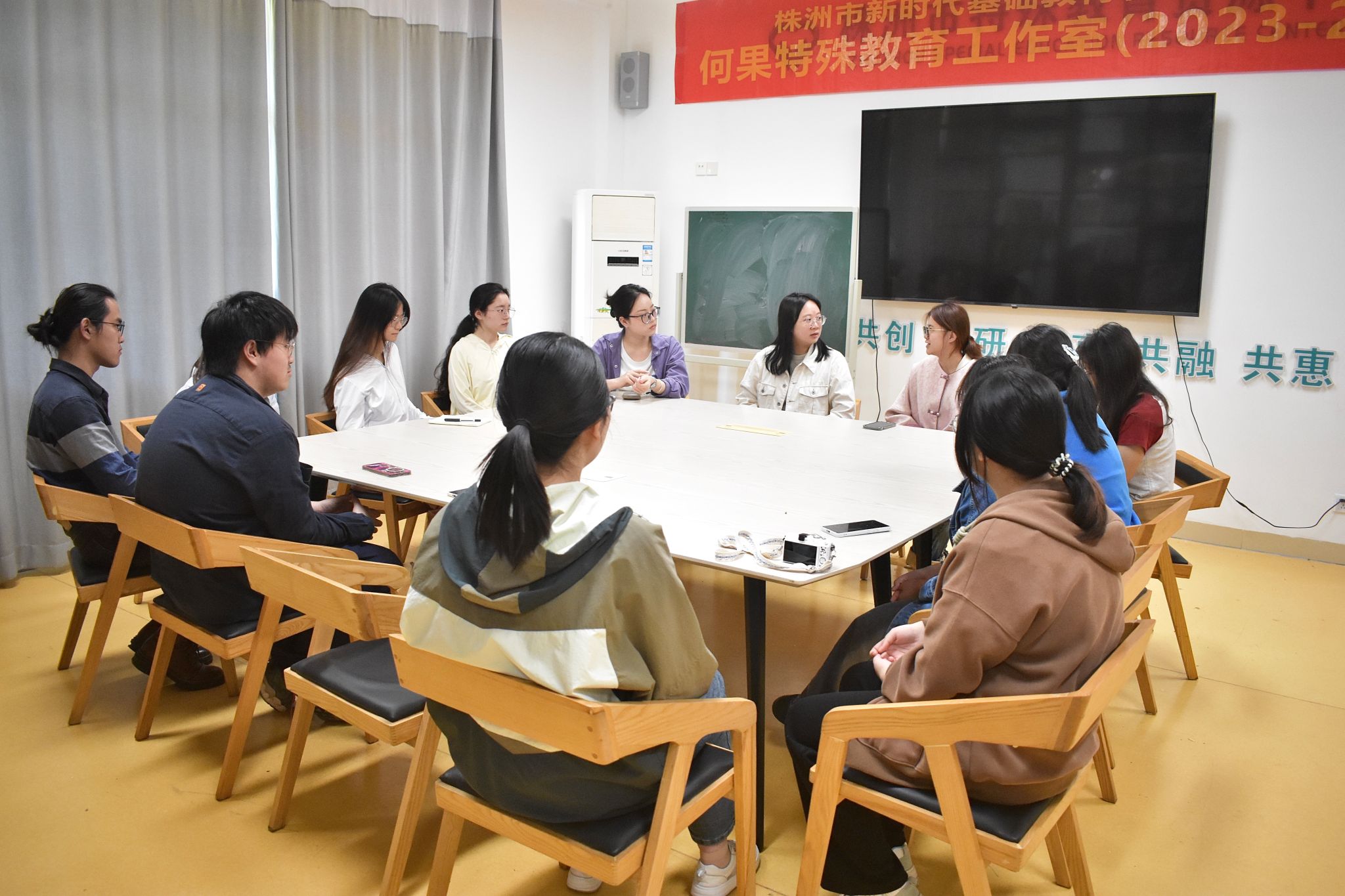 会上,钟雪老师询问近期实习队工作状况及面临问题,鼓励实习队员应认真对待实习工作,在实习中磨练教学技巧,增进特教情怀,用满腔热情服务特殊儿童。