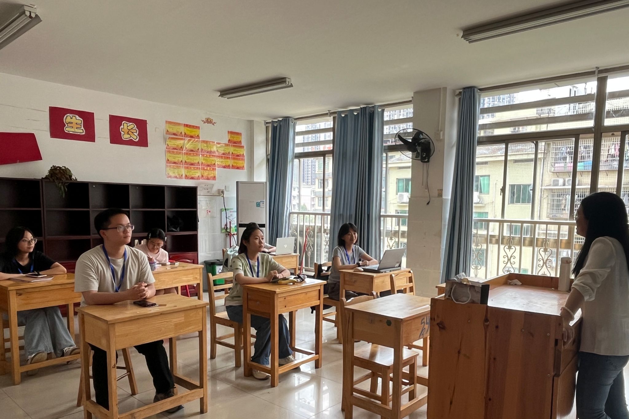 会上,佘丽老师首先肯定了全体实习生前六周的实践成果,随后结合当前实习工作新形势提出具体要求。佘丽老师表示,全体留岗实习生须保持认真实习的状态,延续严谨态度,杜绝因人员变动产生的懈怠心理,要聚焦最后四周的“查漏补缺”目标,继续逐步提升专业能力。她强调,现阶段可以同步开展教育调查报告撰写工作,并建议结合ABC行为分析法、课堂行为个案干预等实践方法进行实证研究,形成反思性成果。