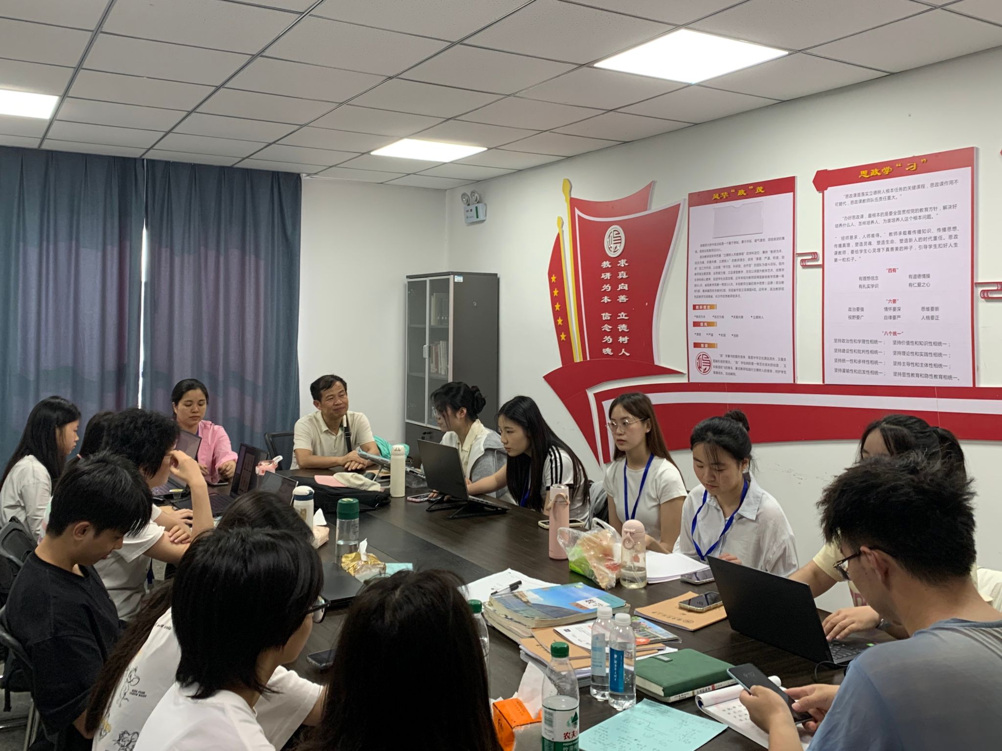 指导教师充分肯定实习成果。刘娟指出,队员们在教学设计规范性、多媒体技术应用等方面进步明显。张青就后半程实习工作提出具体要求:一要加强听课观摩与课后反思,注重课程设计的严谨性和互动性;二要尝试教学研究,在课堂教学、“人工智能+教育”等领域尝试调研;三要注重过程材料的收集整理,系统梳理教学案例集、班会活动记录等实习文档,确保成果材料体系化、可追溯,按时保质完成阶段性归档任务。