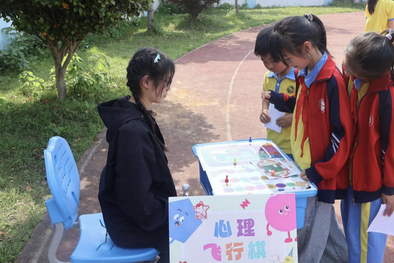 活动期间,心理学社“爱润朝露”支教志愿服务团队为雅江二小带来十余项单人和多人特色活动。活动在“心声驿站”处设置烦恼信箱和快乐信箱,引导员工们主动体会积极或消极的情绪,勇于面对情绪问题,做情绪的主人;以“心理飞行棋”的趣味形式传播更多心理健康保健知识,教会员工们在面对困难时应该怎么做;在“仙人指路”活动中,参与活动的员工需要蒙住双眼,在同伴的引导下避开多重障碍到达终点,锻炼员工们感知觉能力和语言表达能力的同时,也使他们更能理解并尊重残障人士。