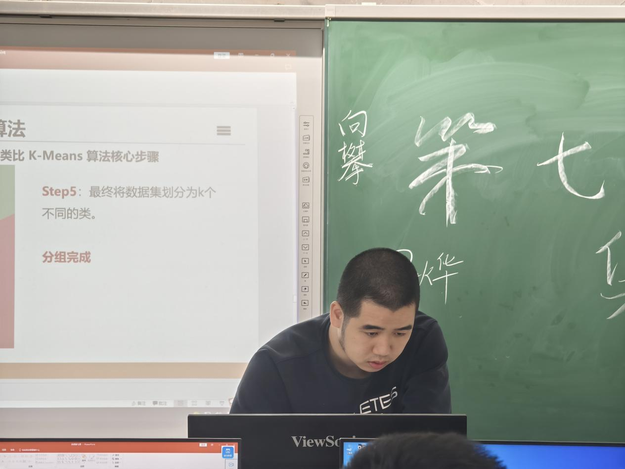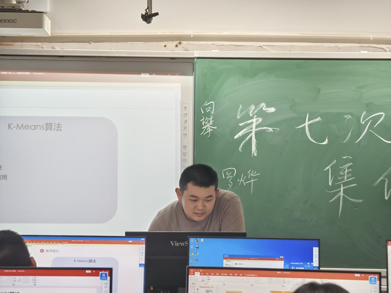 在说课展示环节,三个实习小组呈现了精心设计的算法专题方案。第一组以"KNN与K-Means算法对比"为核心,通过生活场景导入算法差异,构建"原理-案例-实践"三维教学体系;第二组深耕"K-Means聚类算法",采用动态可视化演示聚类过程;第三组解析"决策树算法",以"动物分类"为项目主线,融合线上平台实现可视化教学。