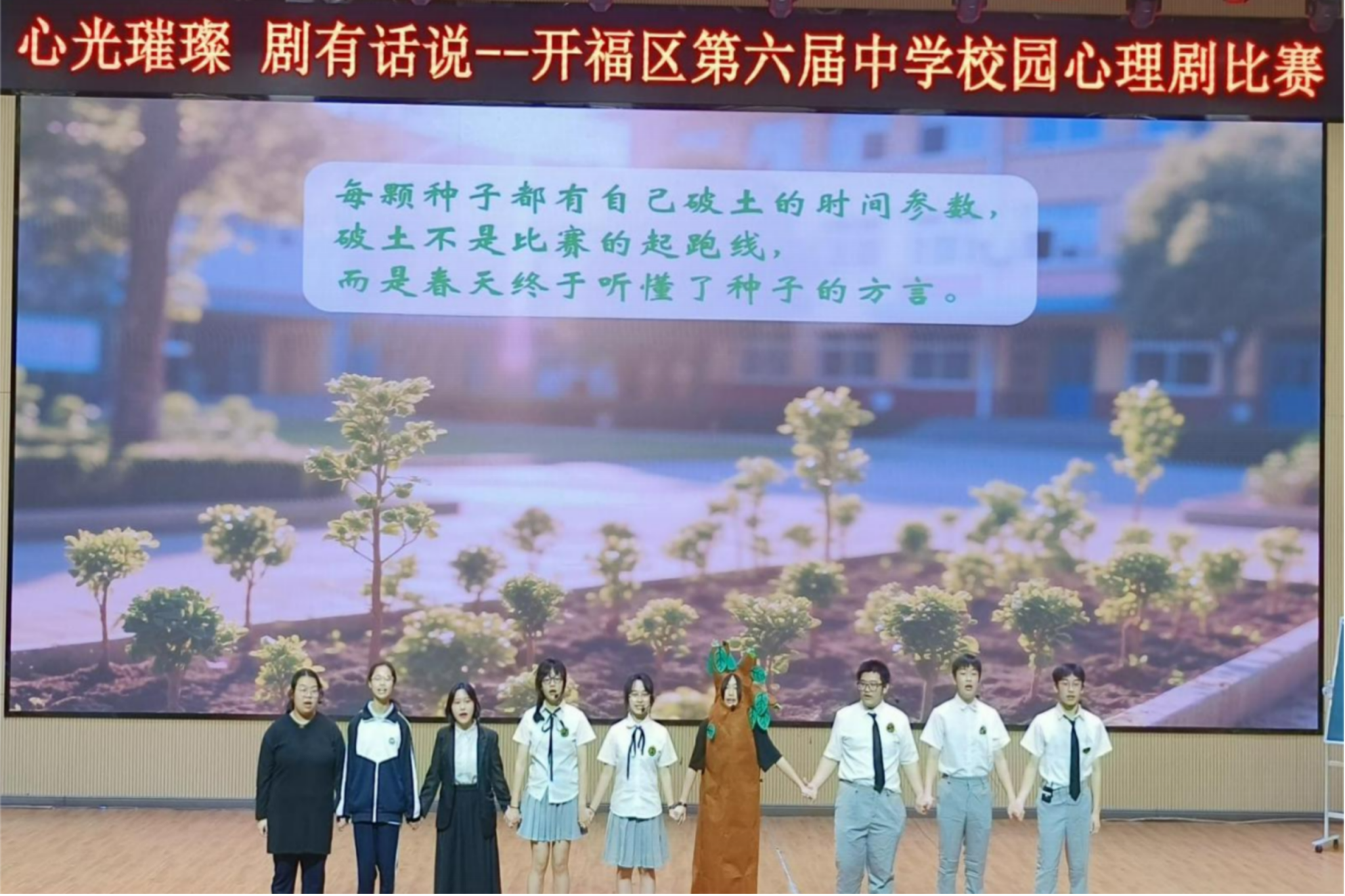 (通讯员 何锦京 罗光耀)为深化心理健康教育实践,4月24日,开福区教育局主办的第六届中公司园心理剧比赛在麓山高岭实验公司麓岭大讲堂举行。全区各中学选送优秀剧目参赛,beat365手机版官网入口赴长沙市一中广雅中学实习队(以下简称“实习队”)指导的《期望裂痕里的破茧重生》与《流言拼图》两剧,以深刻的心理洞察与艺术表达展现心理育人实践成果。