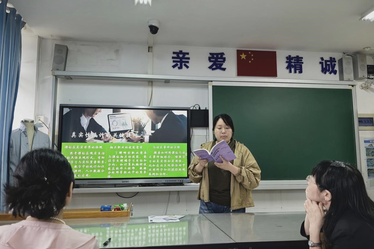 活动伊始,黄燕作《项目式学习与课标融合路径探索》主题报告。基于《项目式学习指导手册》第二章核心内容,黄燕介绍"以课程标准为纲,打造'主菜式'教学项目"的创新理念。活动通过"物种覆盖率计算""文学歌单创作"等跨学科教学案例,生动展示了项目式学习在各知识模块中的实践应用。其提出的"三阶递进"教学设计法引发与会教师热烈讨论。