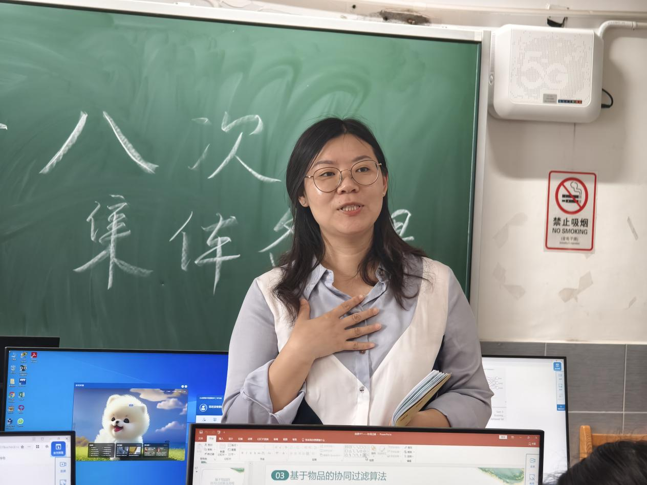 活动伊始,实习队三个小组依次进行说课展示。第一小组以“神经网络”为脉络展开说课;第二小组则围绕“朴素贝叶斯”主题构建课堂;第三小组以“协同过滤”和“K-Means算法”为主题,为我们分别展示了两个不同的课堂。三组教学设计各具特色,充分凸显了实习队成员对课程标准的精准把握。