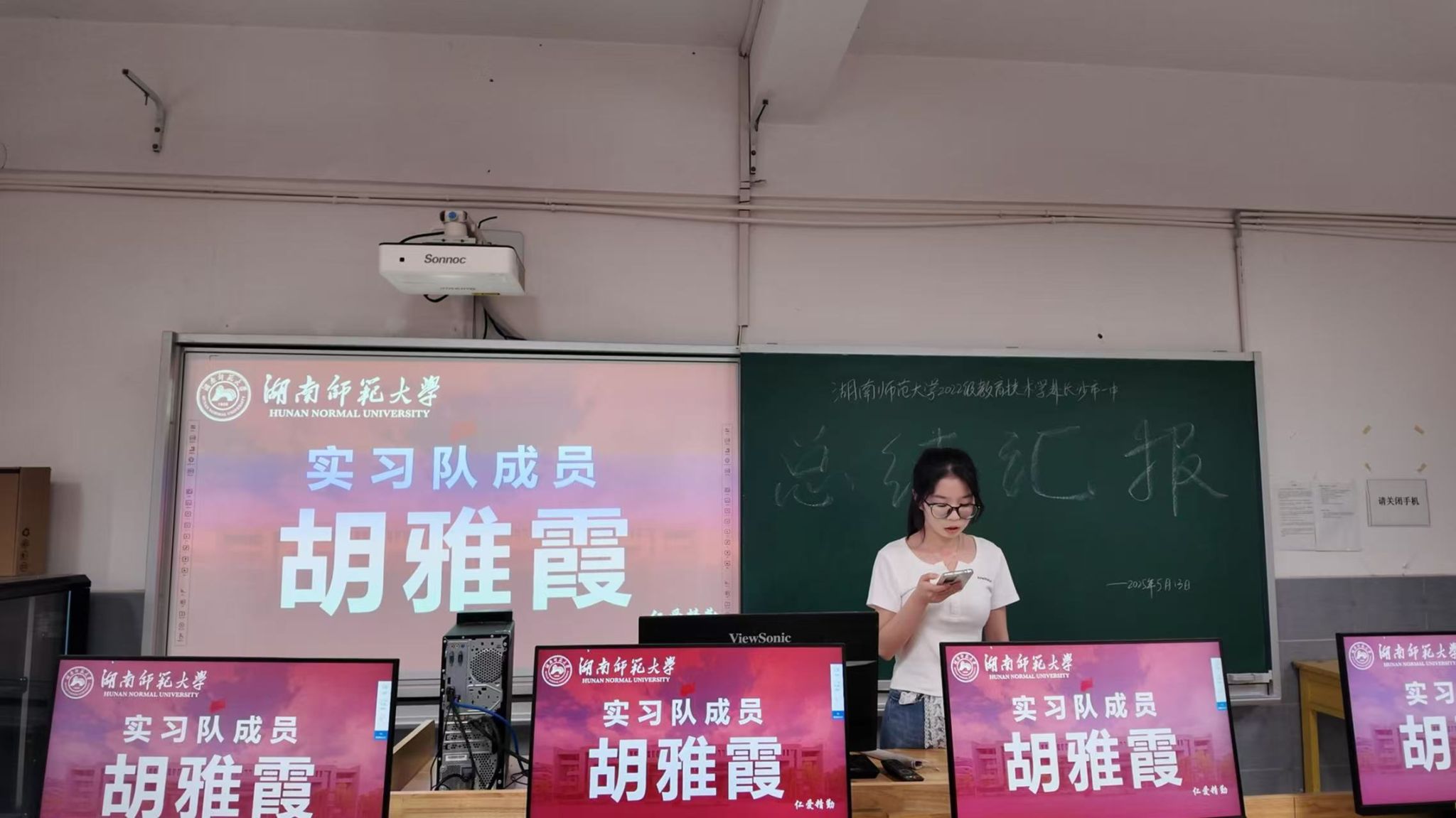 (通讯员 米峻甲 朱焱琳)2025年5月14日下午,beat365手机版官网入口赴长沙市第一中学实习队在科艺楼五楼7号机房进行了实习工作的终期总结汇报会。本次会议由实习队长米峻甲主持,一中老师袁帅,实习队带队老师刘文胜、马建军、白蕴绮以及实习队全体人员参加。